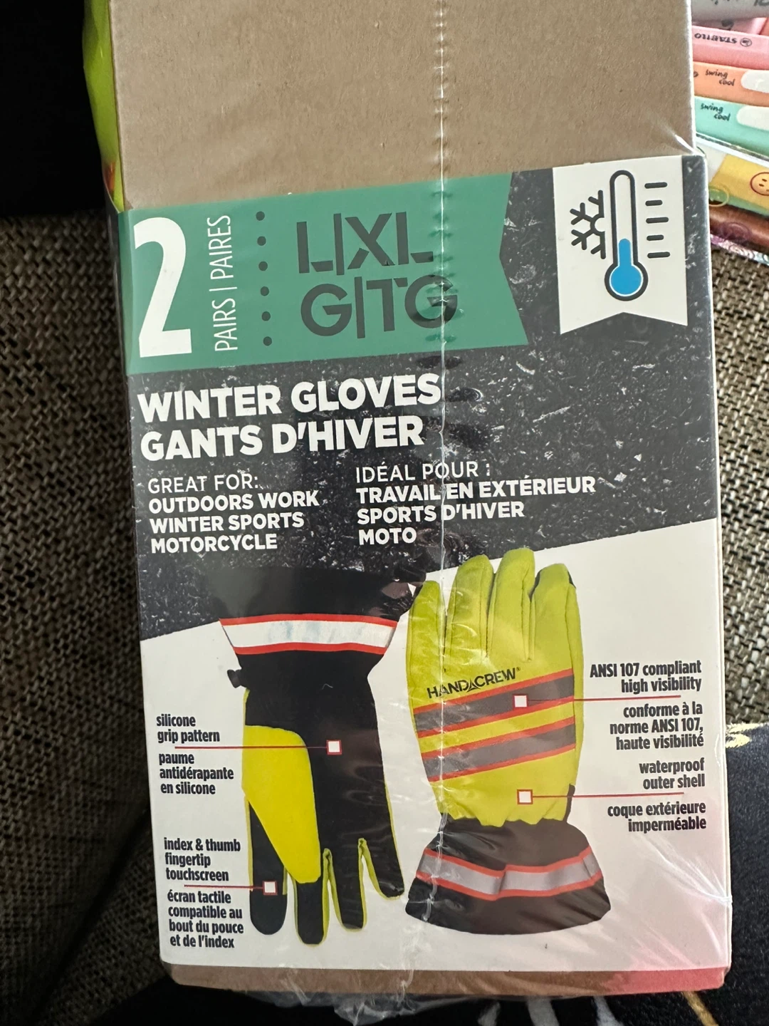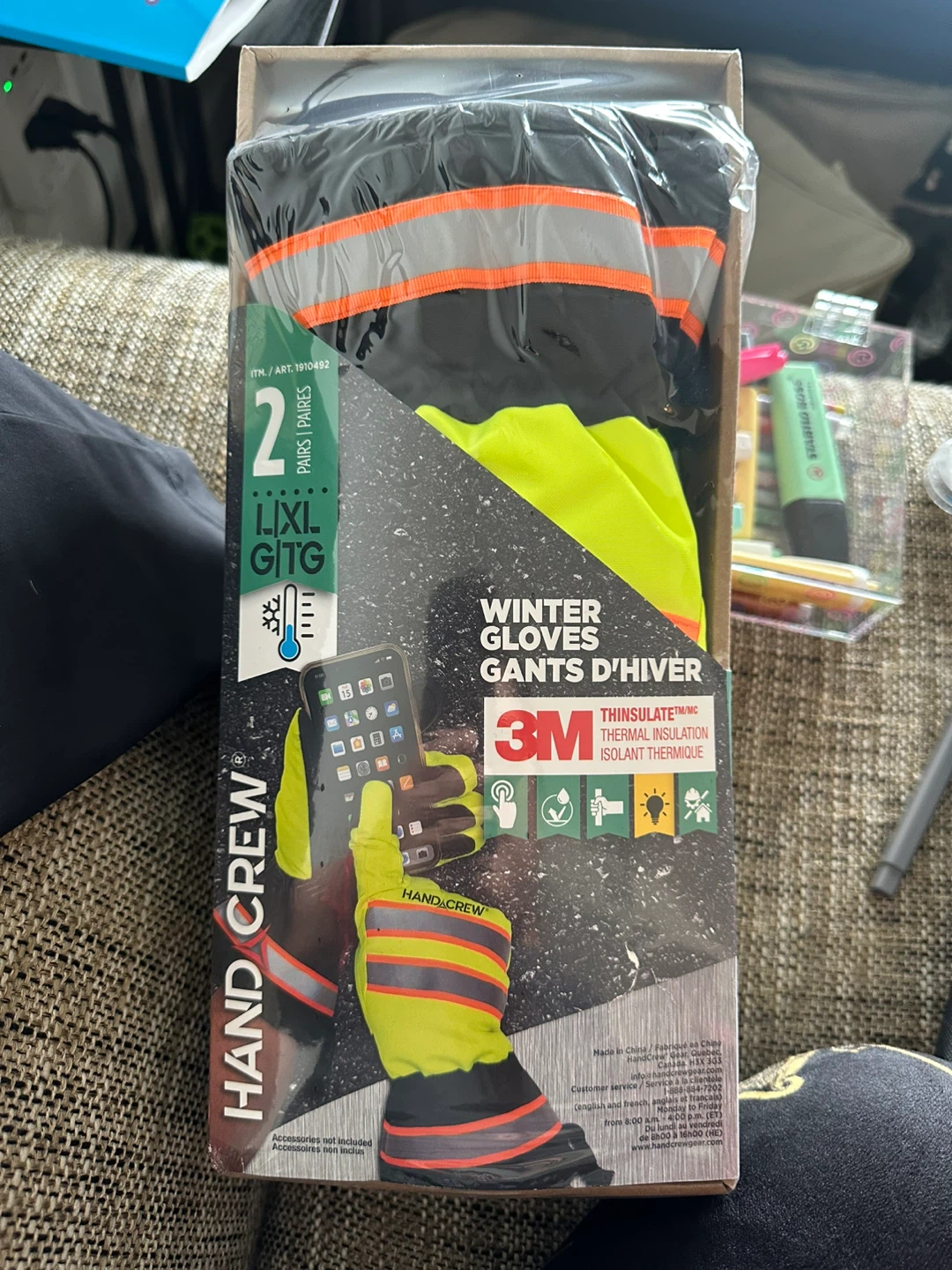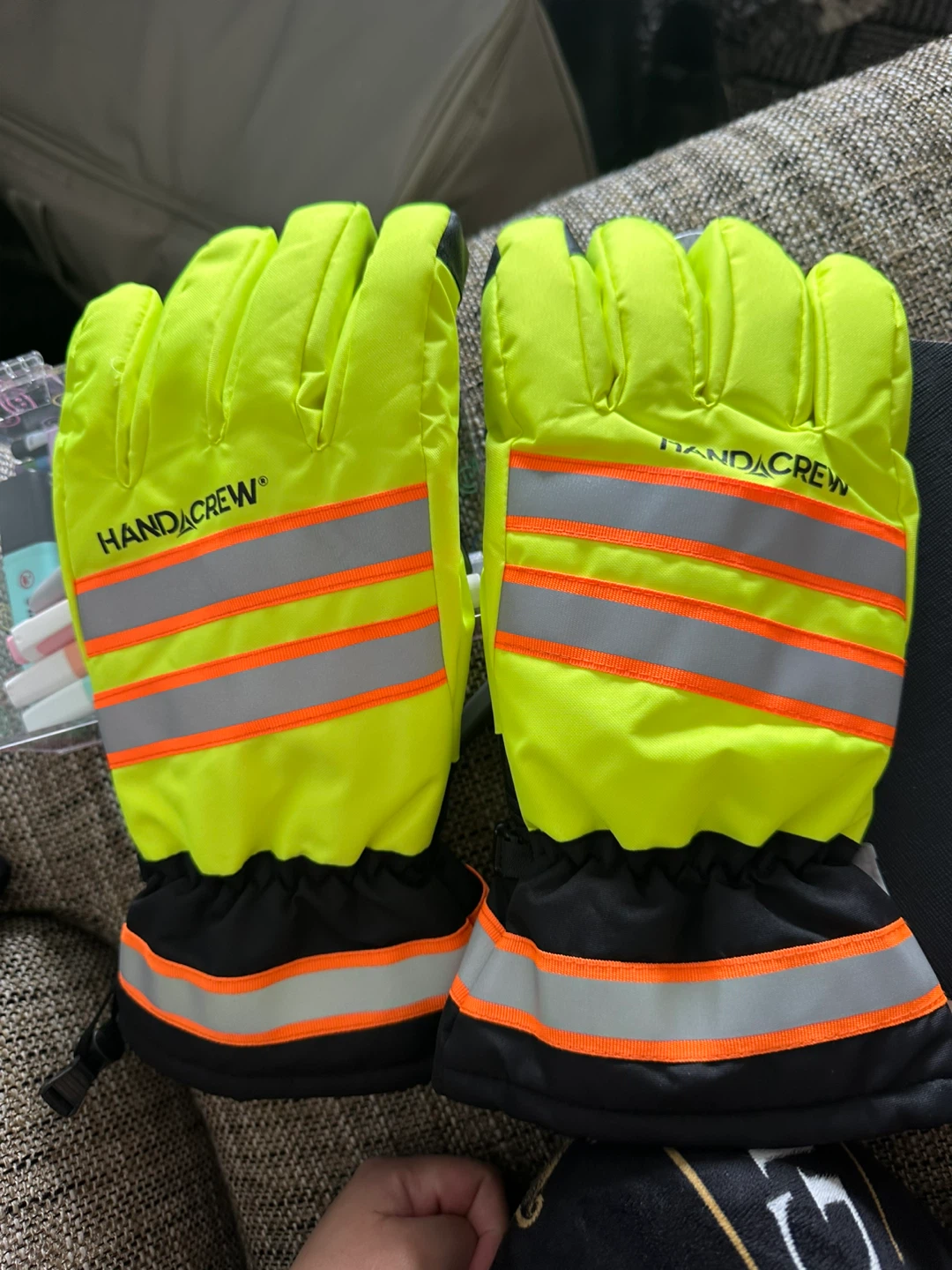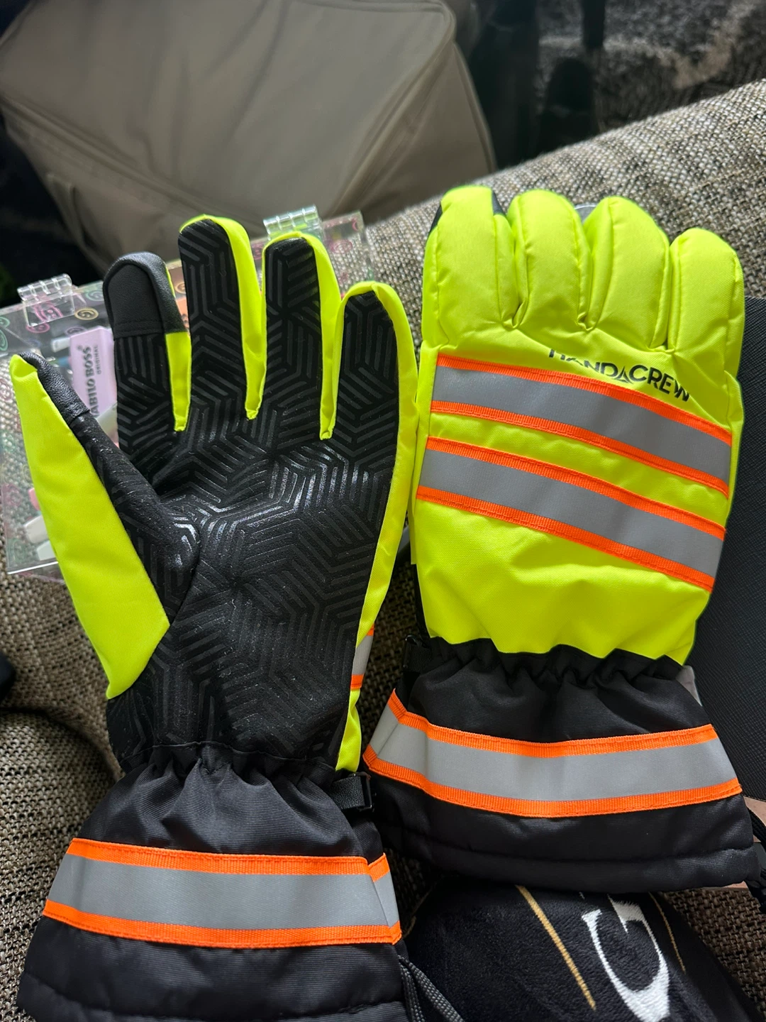 Selling ONE pair of Handacrew winter gloves, size L/XL. keep your hands warm and protected this winter. These gloves are great for outdoor work, winter sports, or motorcycle riding. They are ANSI 107 compliant for high visibility and waterproof. The gloves also feature a silicone grip pattern and index & thumb fingertip touchscreen compatibility. Comes with 3M Thinsulate thermal insulation. Selling ONLY ONE PAIR, as the box comes with two pairs but we just needed one. Pick up Brentwood concord