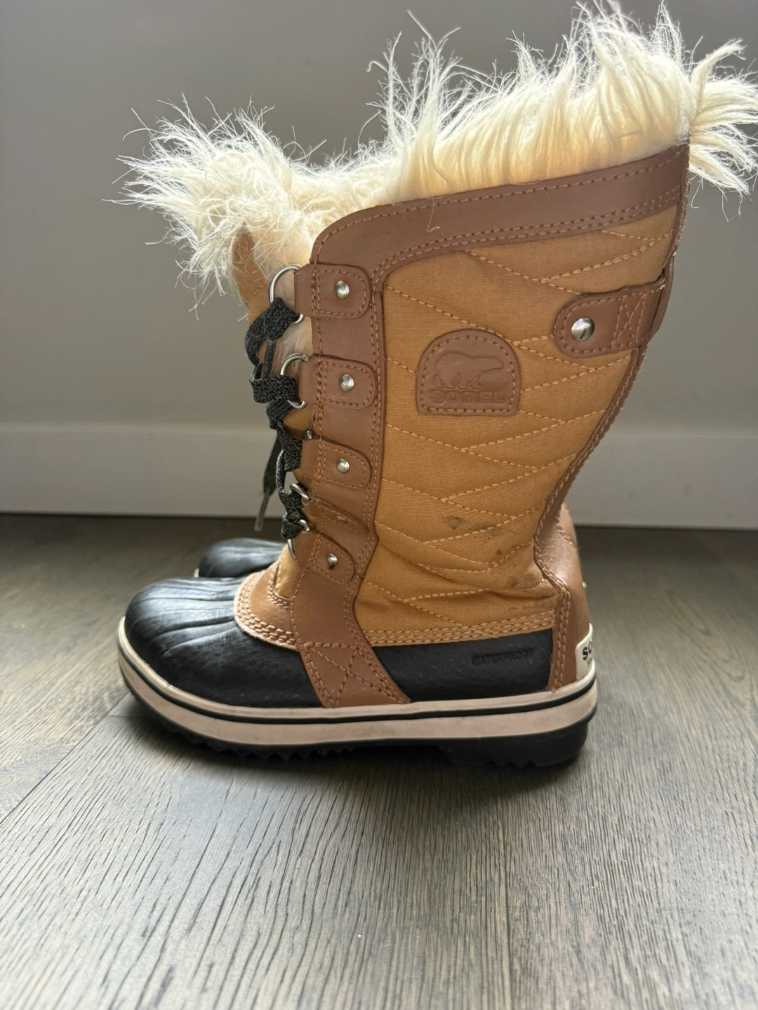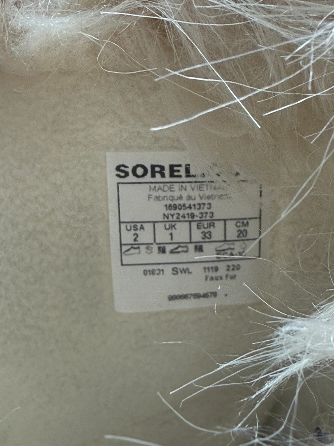 Selling a pair of Sorel winter boots in size 2 US. They have a cozy faux fur lining and are perfect for keeping little feet warm and dry during the cold Canadian winter!