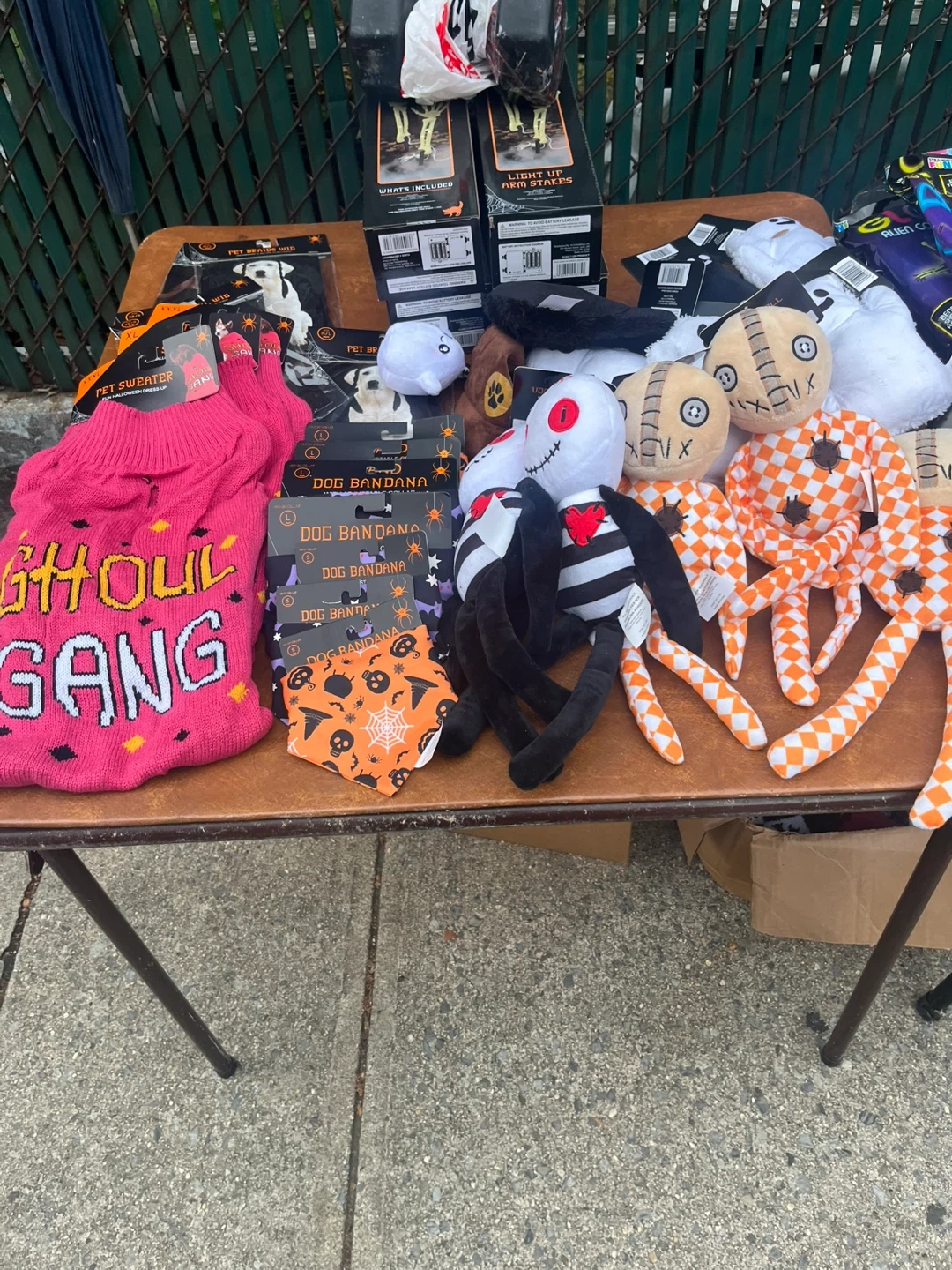 Selling a cute collection of Halloween costumes for your furry friend! There's a pink "GHOUL GANG" pet sweater, dog bandanas with Halloween themes, and light-up arm stakes to make your dog stand out at night! Perfect for Halloween!