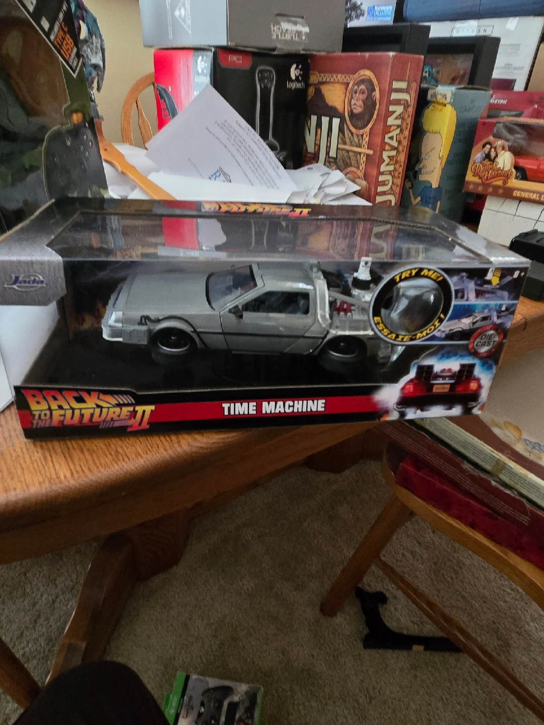 Selling a Back to the Future II Time Machine die-cast car! It's still in its original packaging. The box is in good condition, and this would be a great gift for any Back to the Future fan