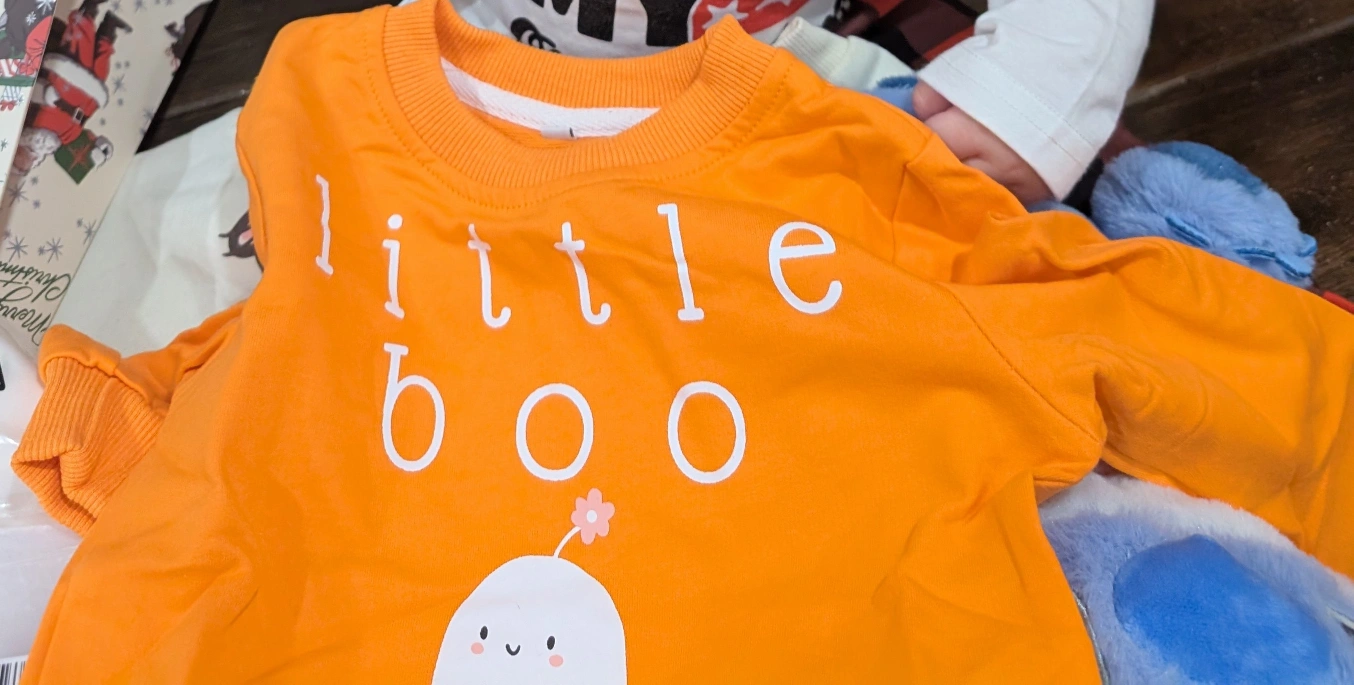 113Cute orange sweatshirt with 'little boo' design! Perfect for your little one this fall and Halloween!