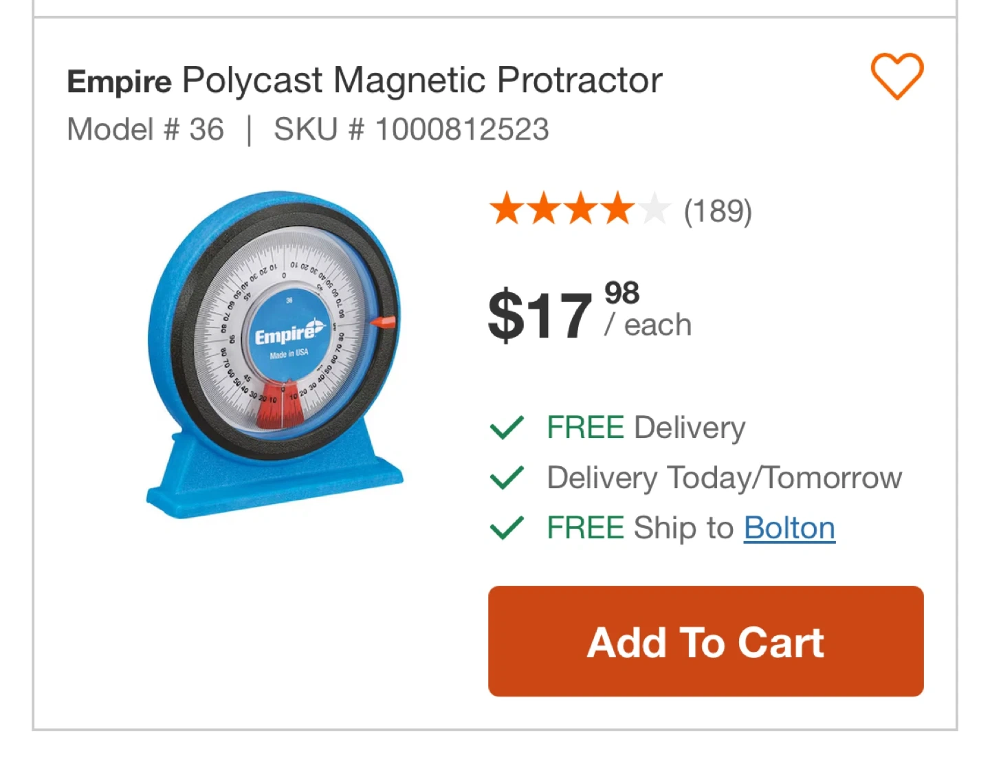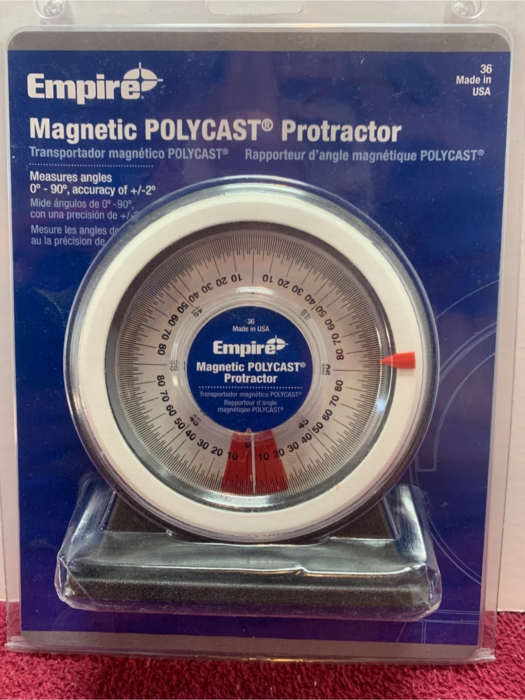15Empire magnetic POLYCAST protractor, new in packaging. Pickup in Bolton $12