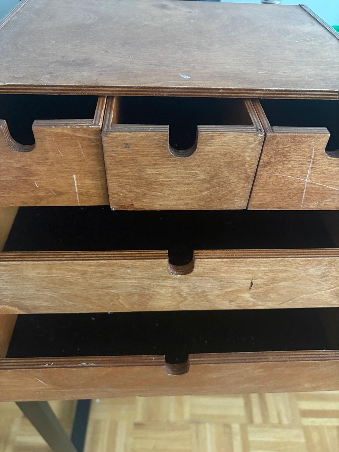 Selling a wooden drawer storage unit. It has a few scratches but is still in good condition and perfect for organizing your space