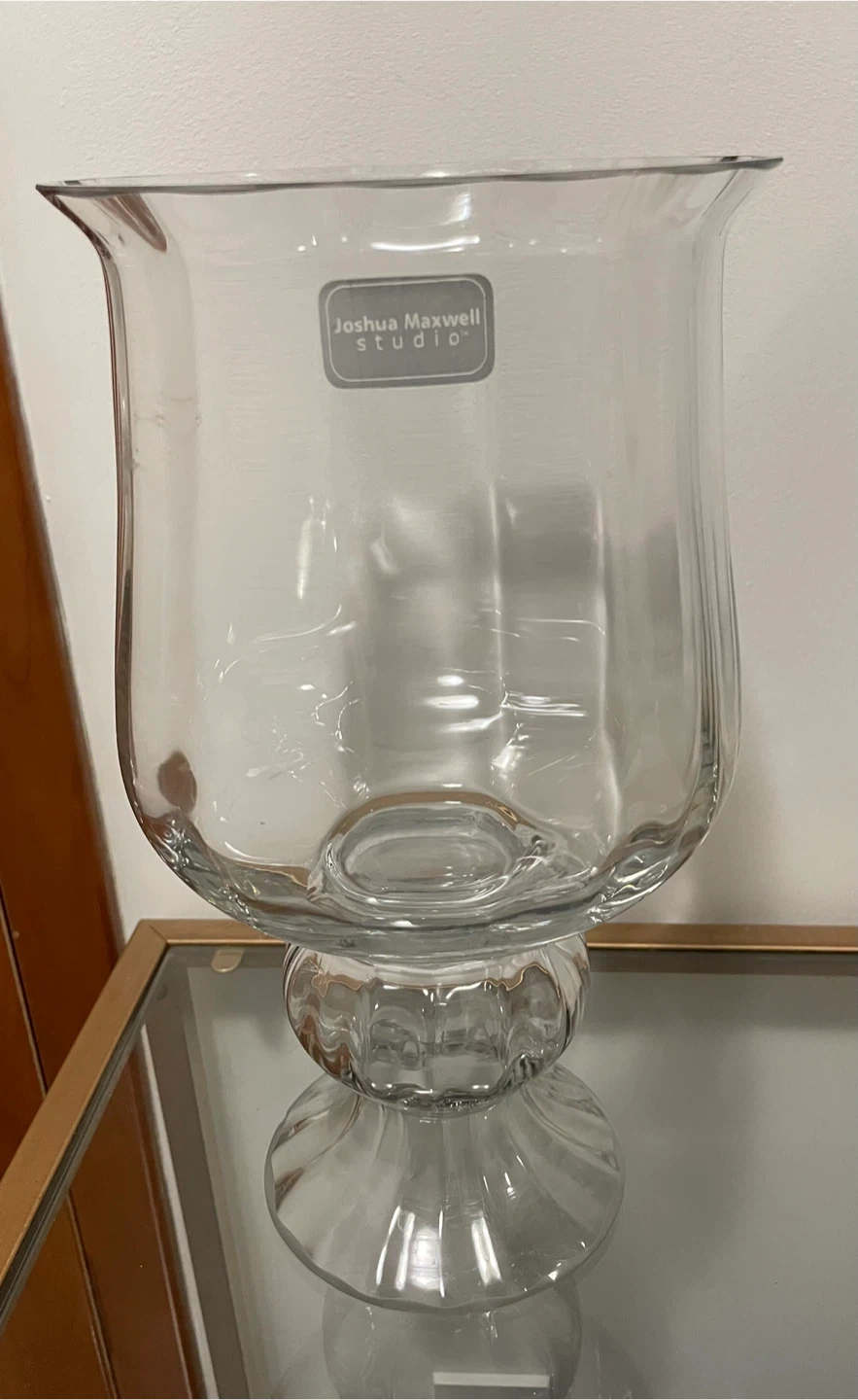 Selling a beautiful glass vase from Joshua Maxwell Studio! It's in great condition and would look lovely with flowers or as a decorative piece on its own. The vase has a classic design with a pedestal base and a flared opening.