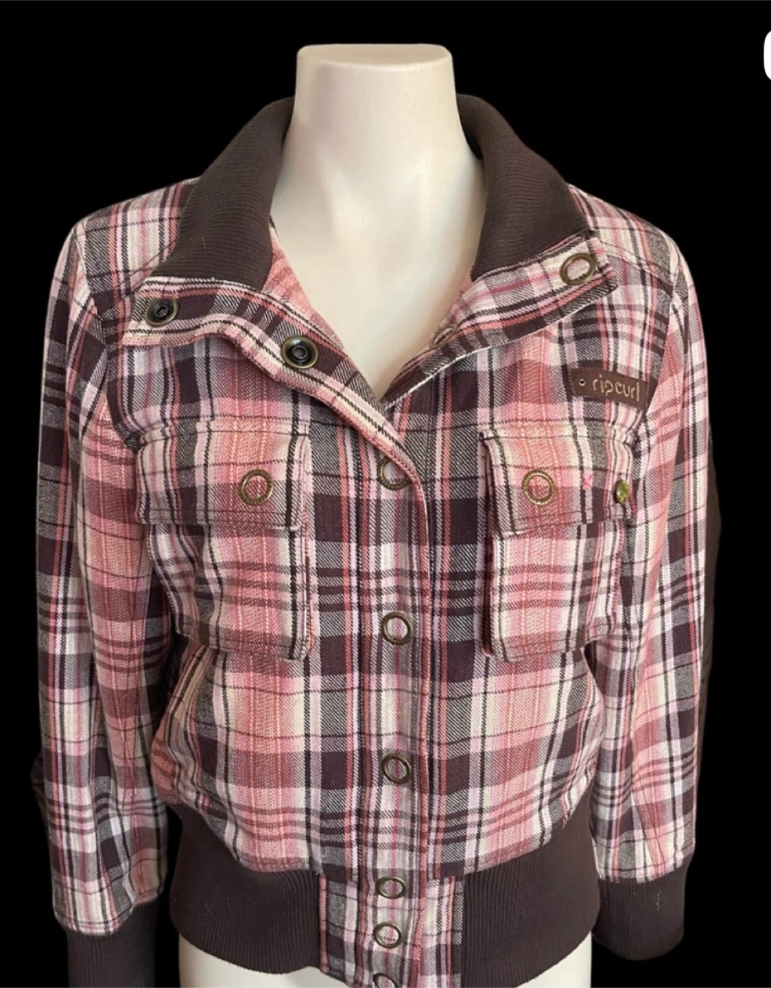 Cozy Rip Curl jacket in a stylish plaid pattern! This jacket is a size large and features a warm, fleece-like lining. Perfect for layering during those cooler Canadian days!