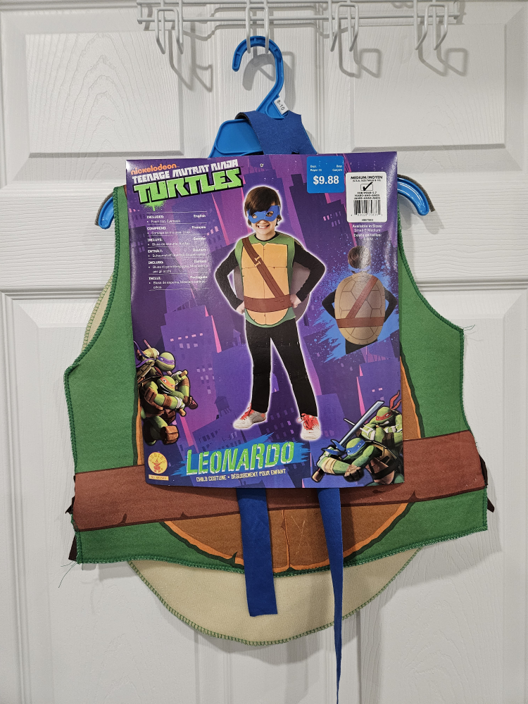 Your little one can become a hero in a half shell with this Leonardo costume from Teenage Mutant Ninja Turtles! It's in great shape and ready for a new adventure. Perfect for dress-up or Halloween!