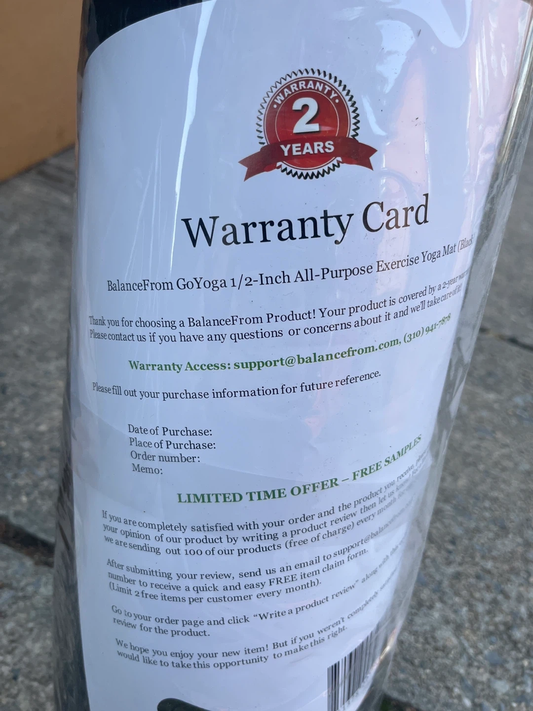 Selling a brand new BalanceFrom GoYoga 1/2-Inch All-Purpose Exercise Yoga Mat in black! It's still in its original packaging and comes with a 2-year warranty card. Perfect for all types of exercise and yoga. Get yours today!