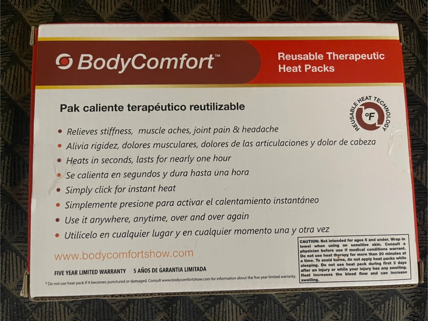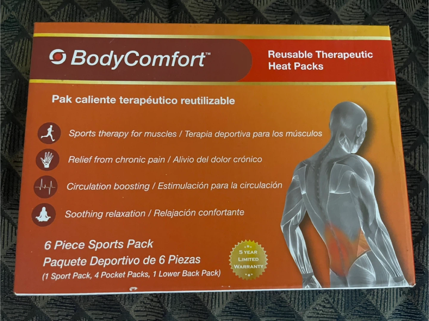 6 Piece Sports Pack. It provides sports therapy for muscles, relief from chronic pain, circulation boosting, and soothing relaxation. Comes with 1 sports pack, 4 pocket packs, and 1 lower back pack. Brand New In Box. Lobby Pick Up.