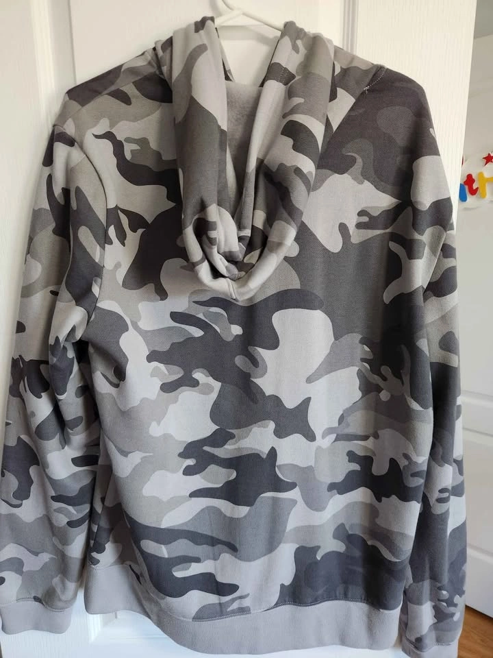 Champion grey camo hoodie in excellent condition. No stains, no rips, no fading — looks and feels like new. Soft fleece inside, classic Champion logo on the front. Unisex fit, comfy and stylish for everyday wear.