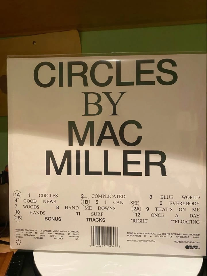 325(Like NEW/Unsealed but never spun ) Urban Outfitters Exclusive Mac Miller Circles on White vinyl. Originally paid $40+ tax/shipping. Asking $30 FIRM. (Will only take $5 off if buying more than one vinyl from my shop). New / never spun/unsealed but will come with outer protective sleeve & poster. Pickup in Woodside, queens. Feel free to check my marketplace profile as I’m constantly downsizing my collection of vinyls.