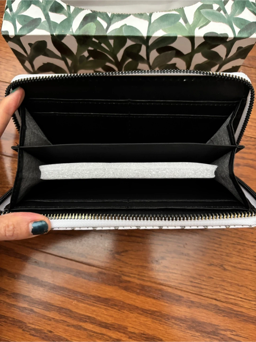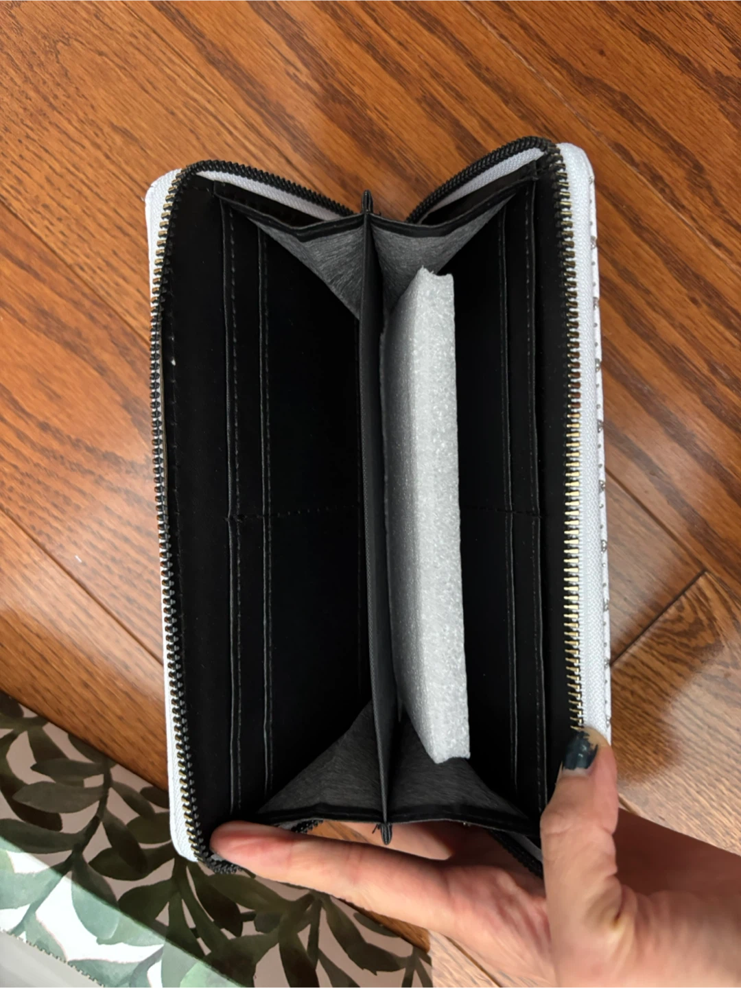 It's brand new condition and has plenty of space for cards (8 slots total) and cash