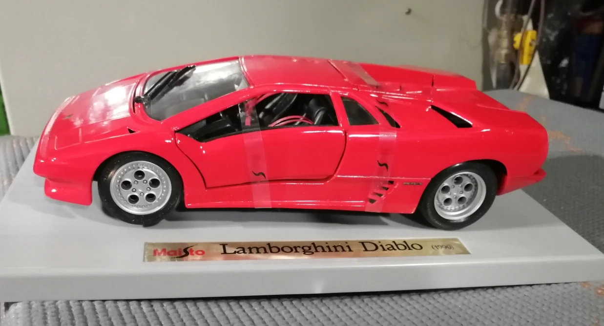 Selling a red Maisto Lamborghini Diablo (1990) diecast model car. It's in good condition and would be a great addition to any car collection