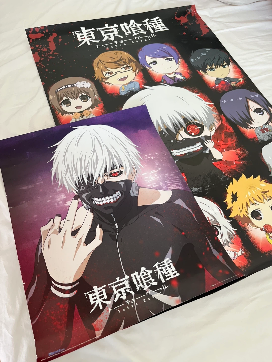 Selling two Tokyo Ghoul posters. It has some wear and tear, especially on the edges, as shown in the photos. Still a cool piece for any fan!