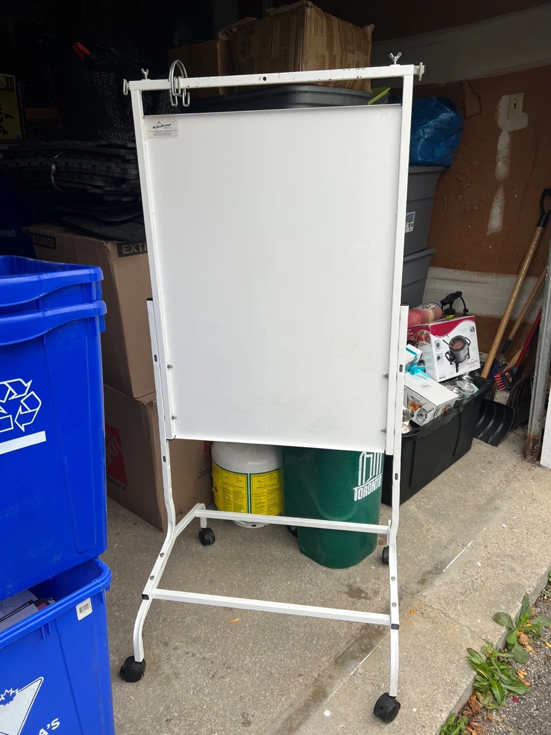 Looking to sell this whiteboard easel. It's on wheels, so it's easy to move around. Great for brainstorming or presentations!
