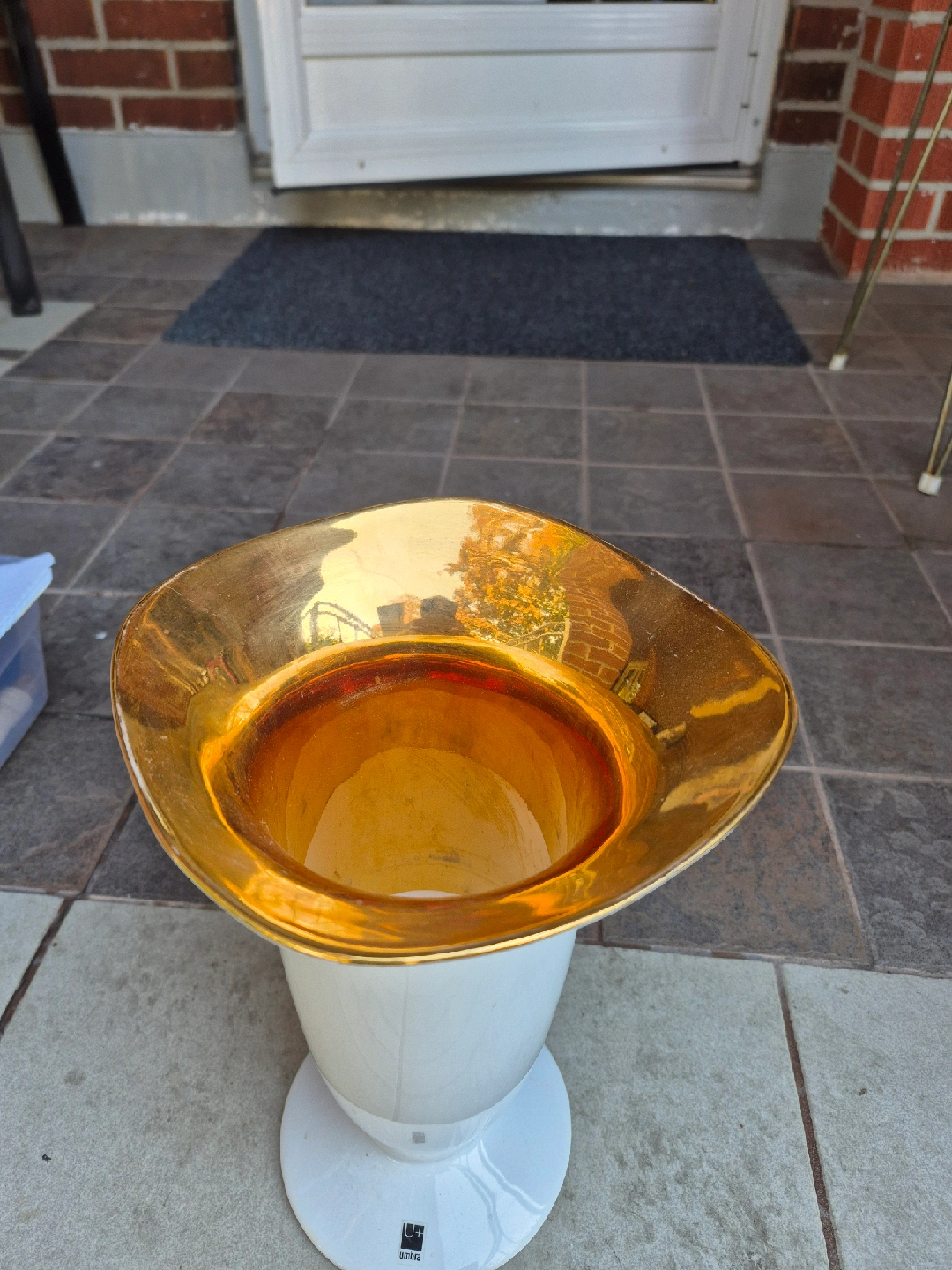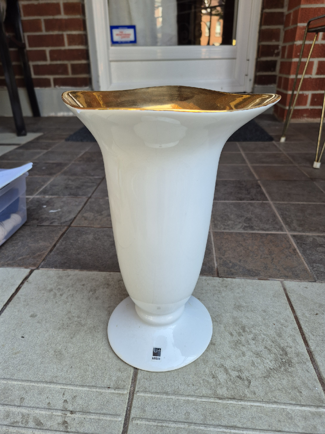 Selling a lovely Umbra Vana vase! It features a clean white base with a stylish gold accent around the top. Perfect for adding a touch of elegance to any room