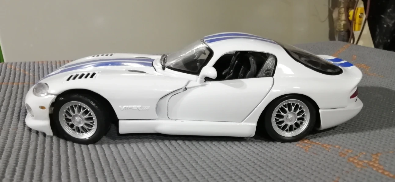 Selling a detailed 1/18 scale diecast model of the Dodge Viper GTS! It's white with blue racing stripes. A great addition to any car collection