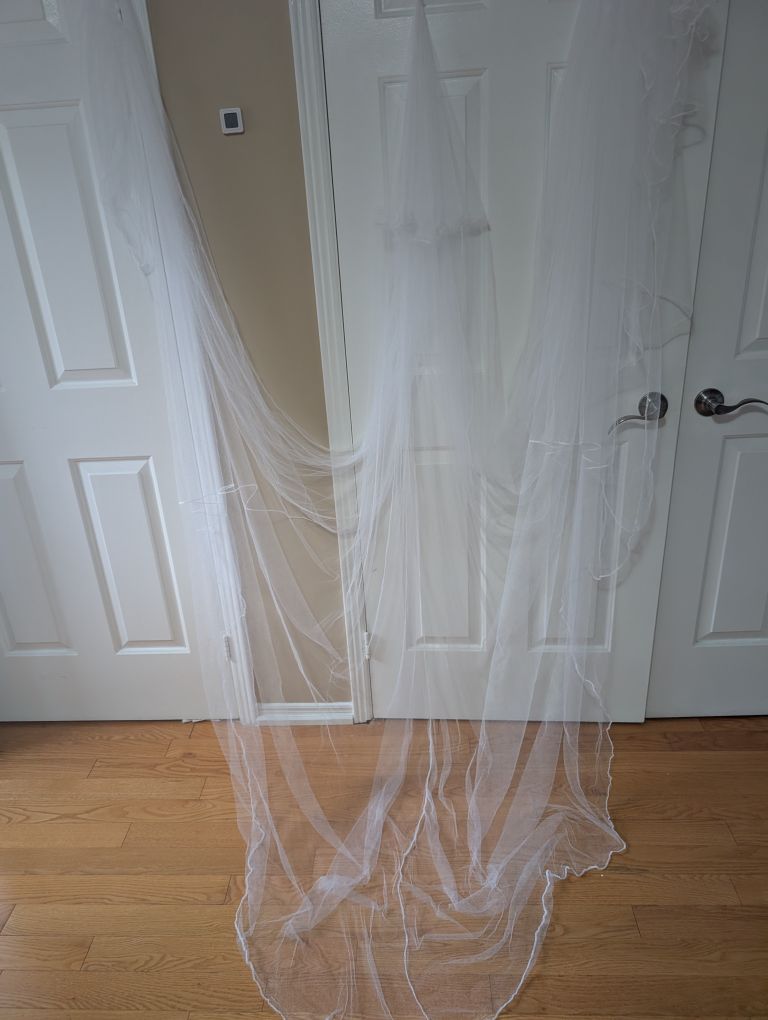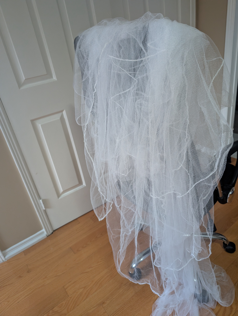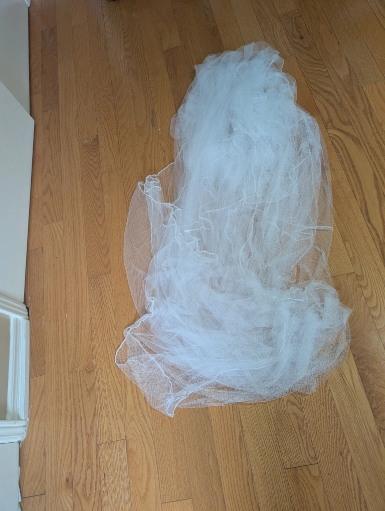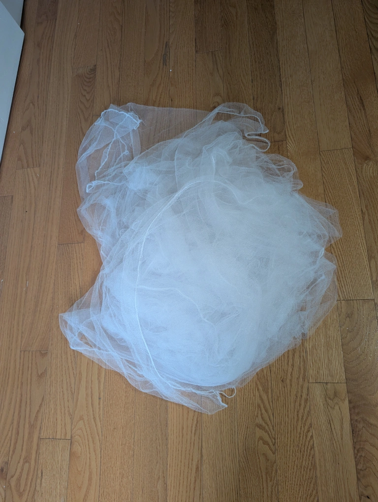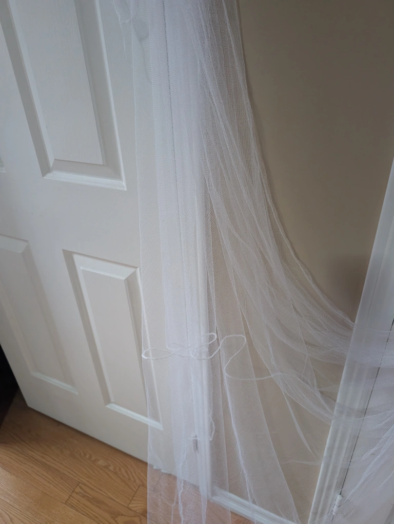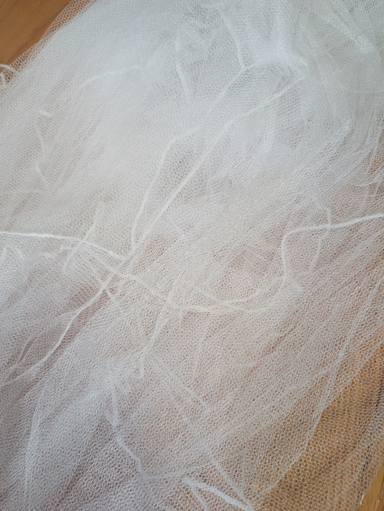 Selling white mesh material for decoration, I think originally it was designed as a canopy over a bed