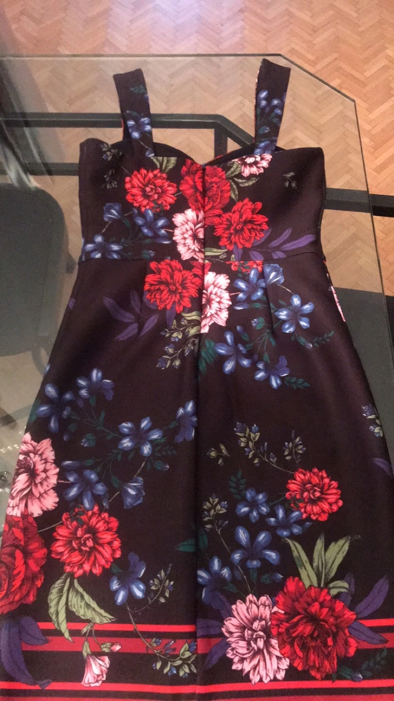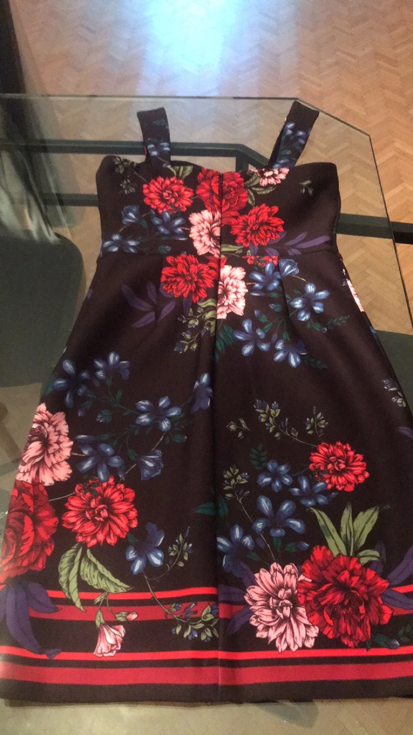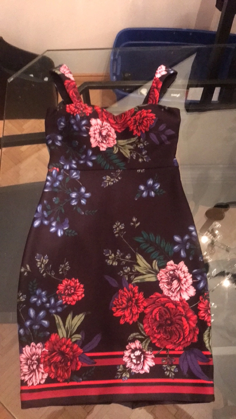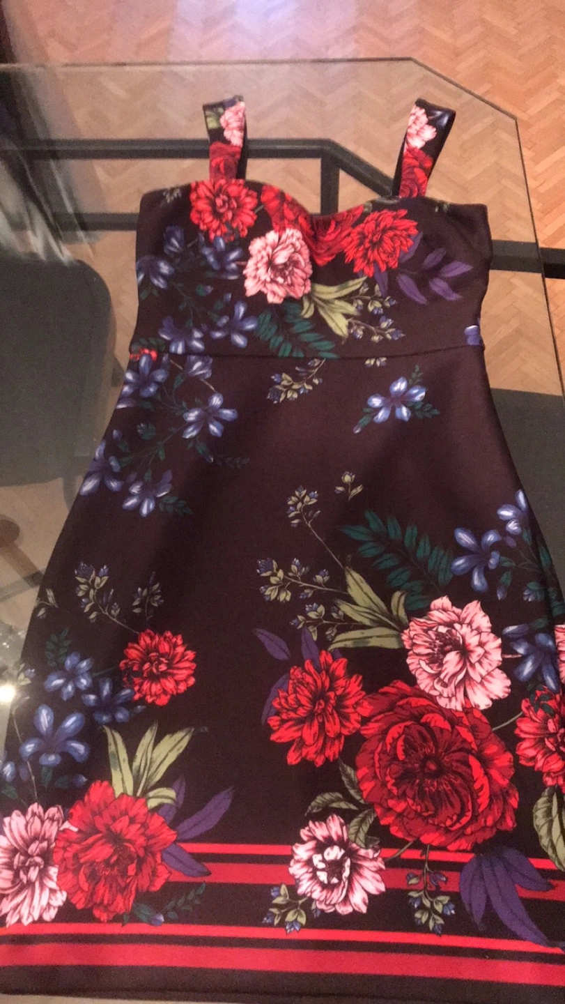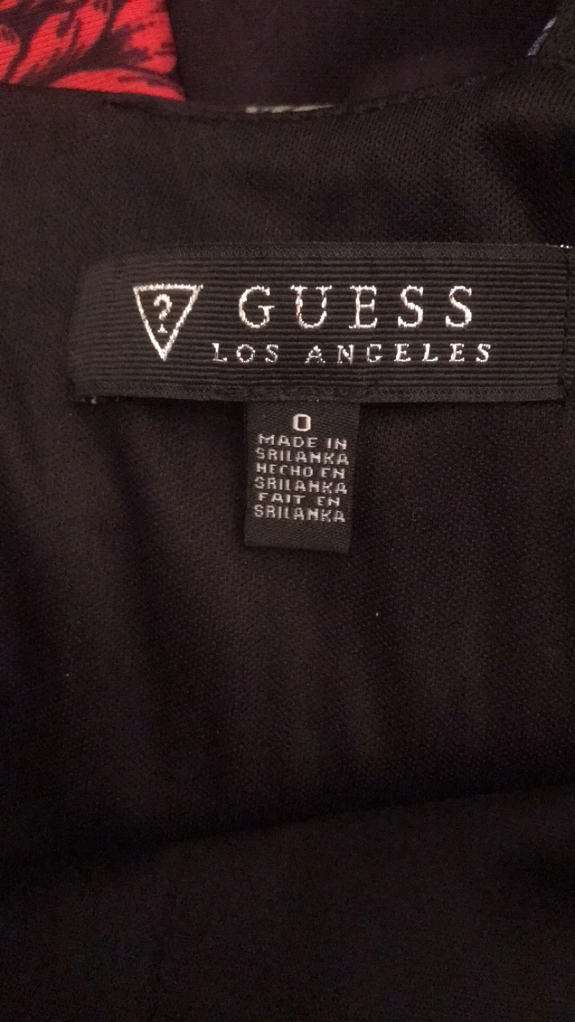 839Selling this lovely Guess floral print dress! It features a beautiful pattern with red, pink, and blue flowers on a black background. Perfect for a special occasion or a night out New! Reaches to my knee. Size zero but has stretch to it😊 Pick up location is 10 Alcorn Avenue Toronto M4V1E4