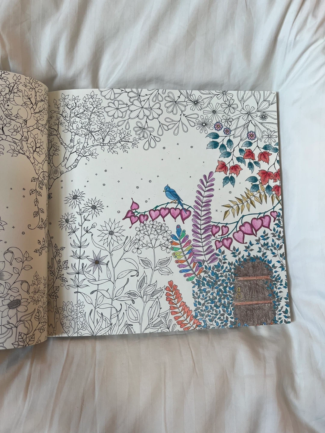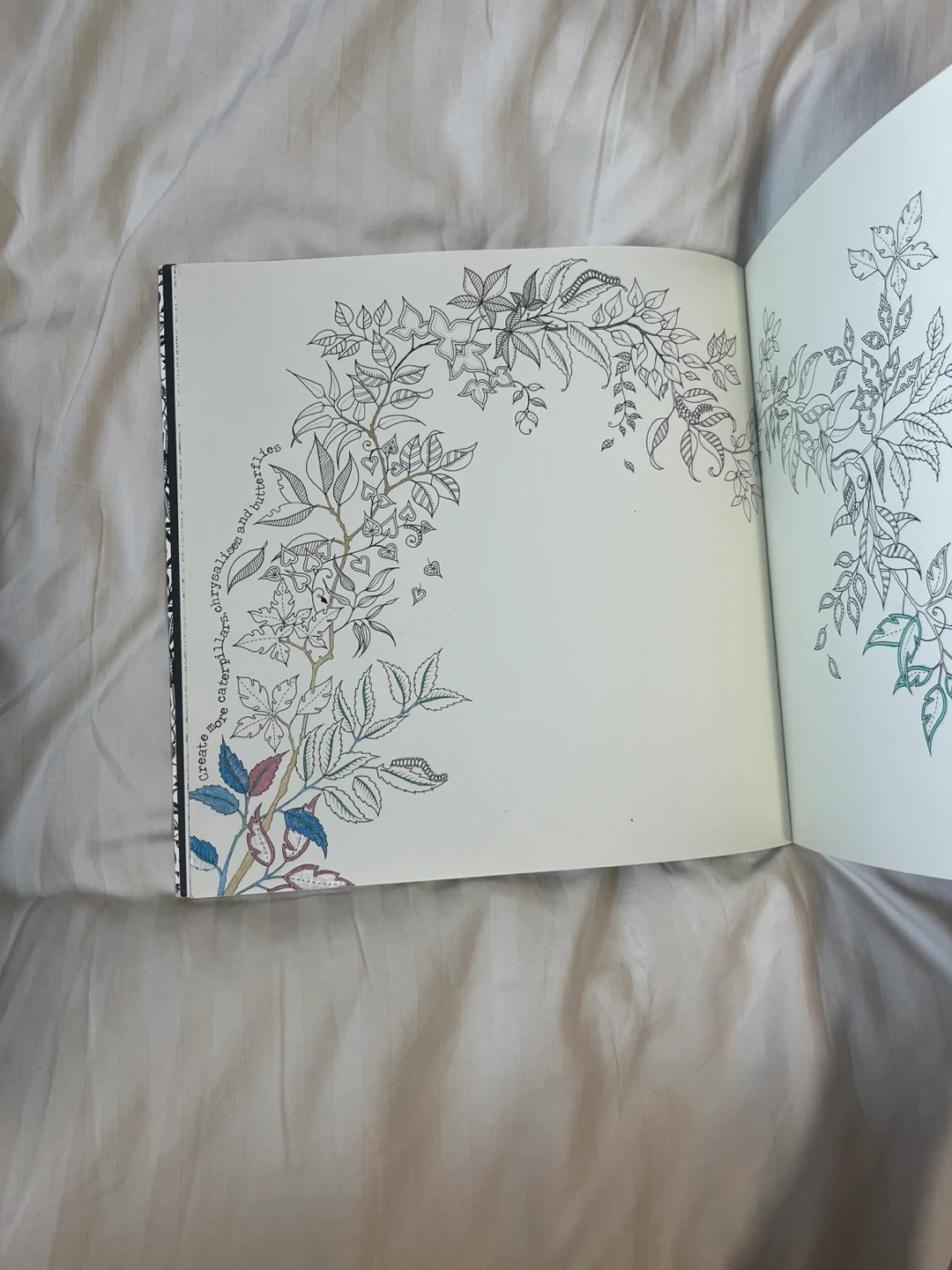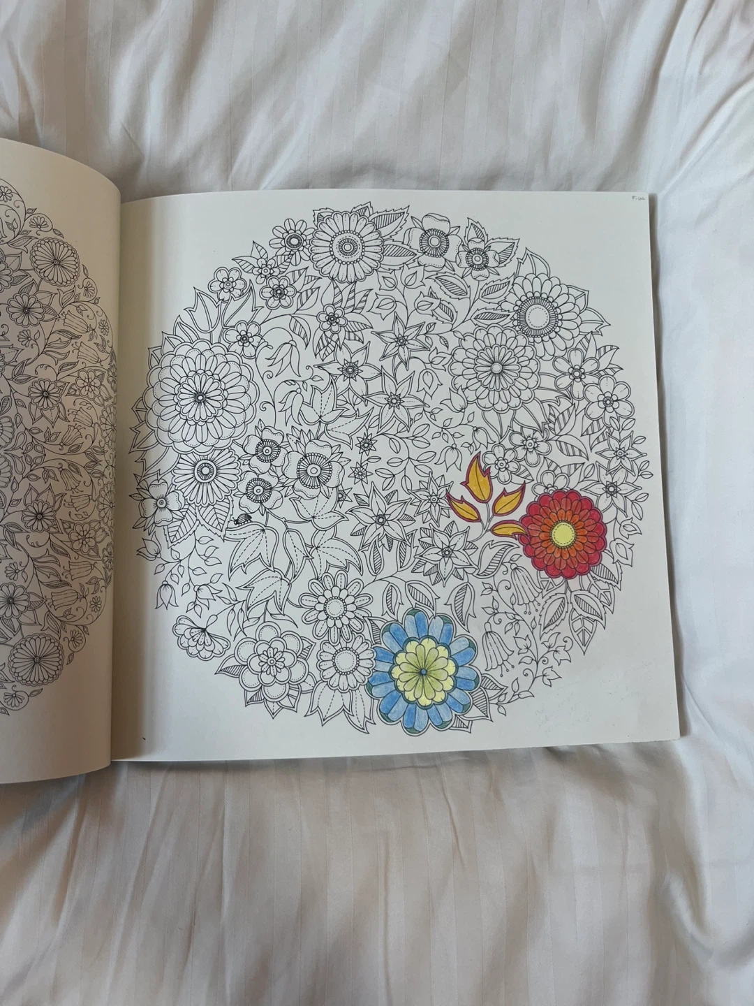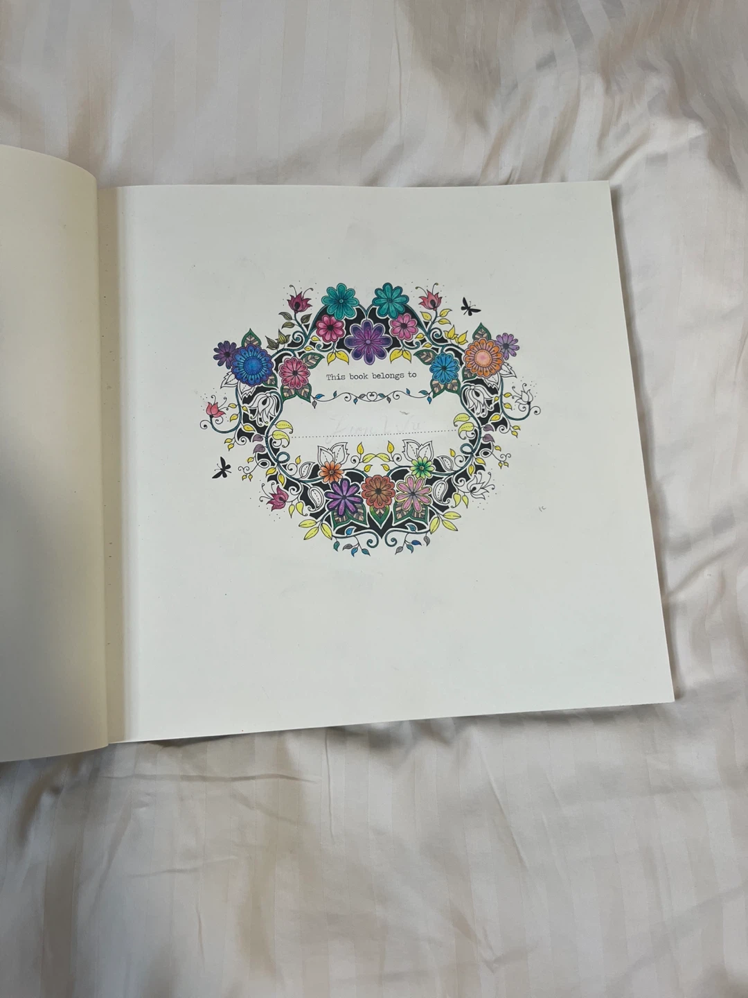 Selling a used Secret Garden coloring book by Johanna Basford. It's an inky treasure hunt and coloring book, perfect for artists and gardeners of all ages. Some pages have been colored in, as shown in the photos. Retailed at $20.95.