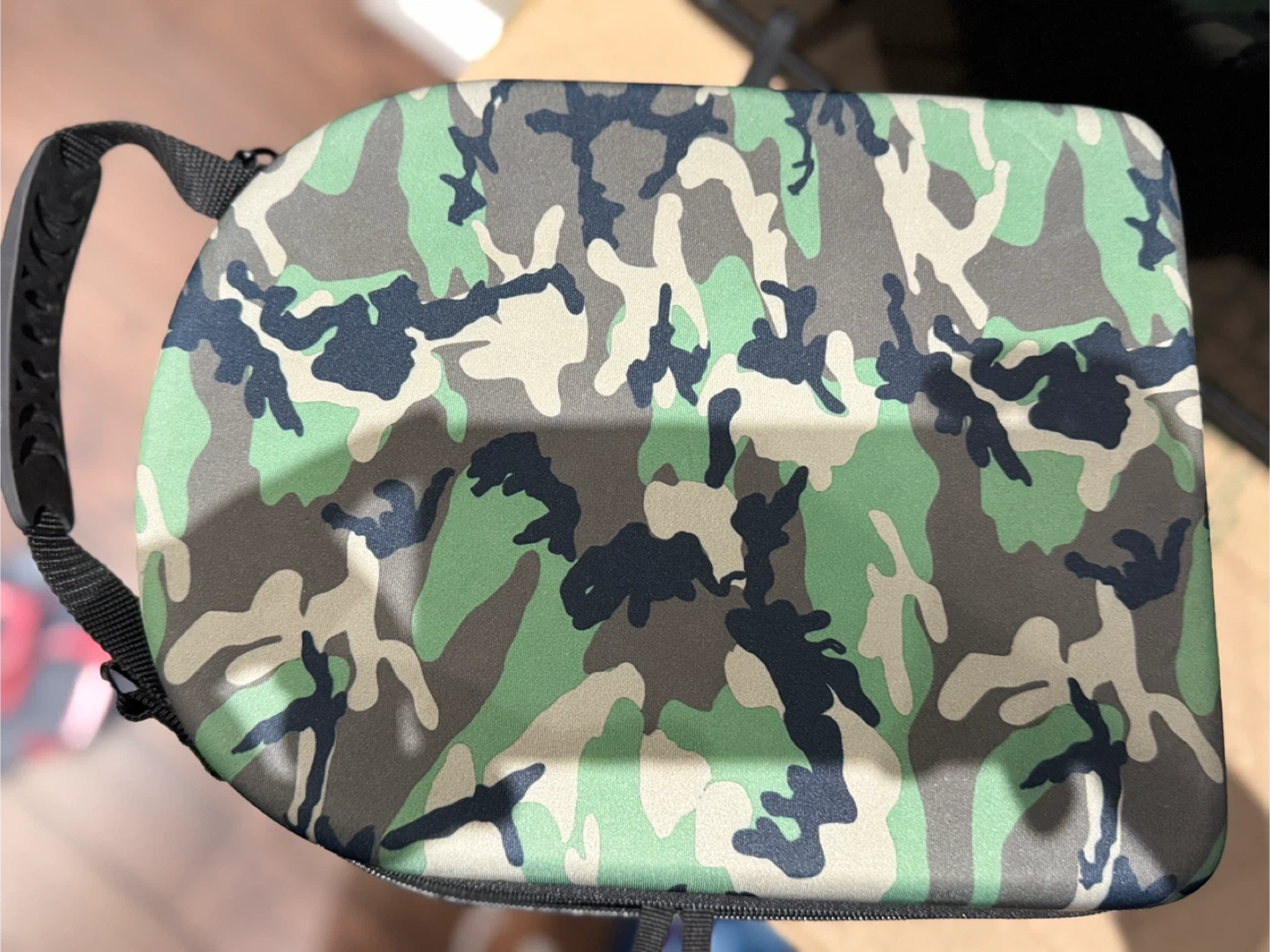 Selling a New Era cap carrier in a cool camo pattern! It's in great shape and perfect for keeping your hats protected. The carrier has a zipper closure and a handle for easy carrying