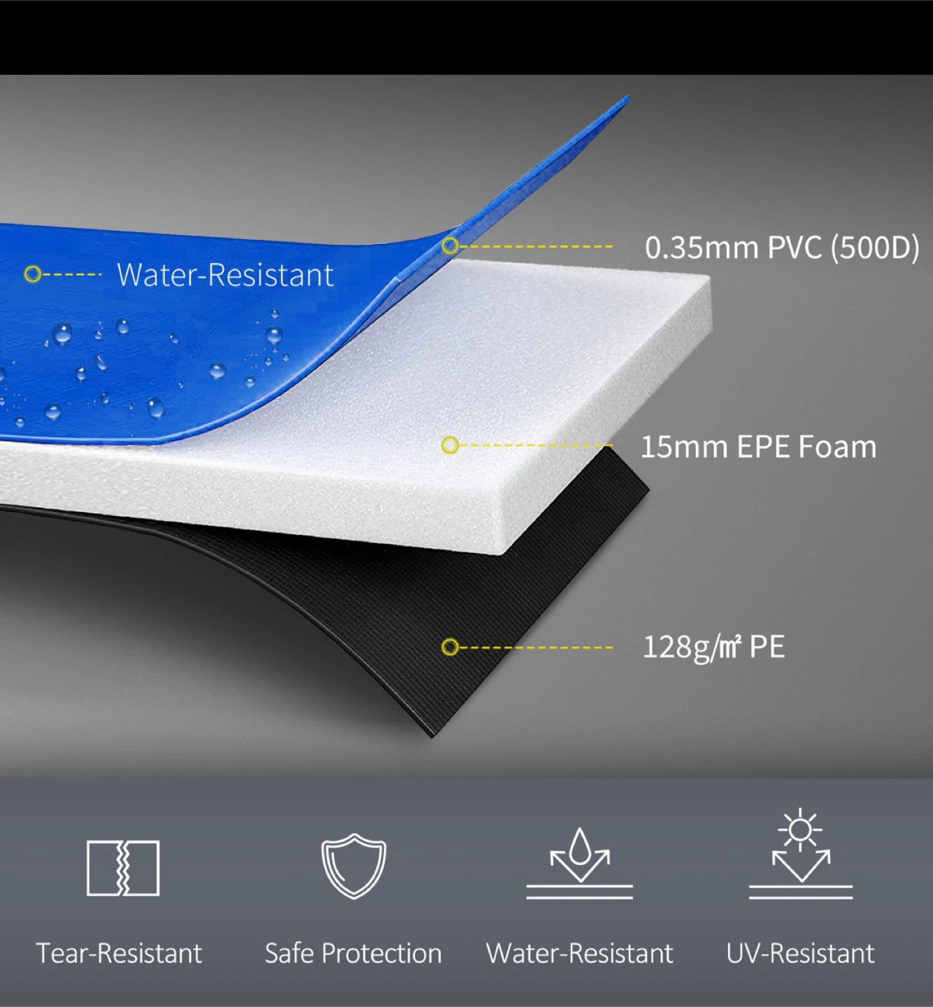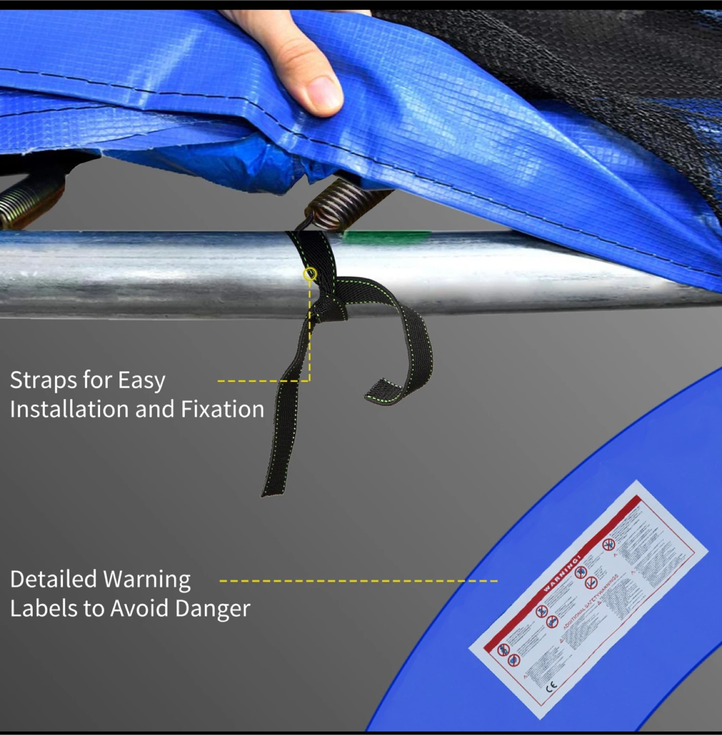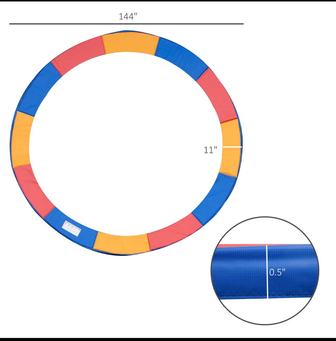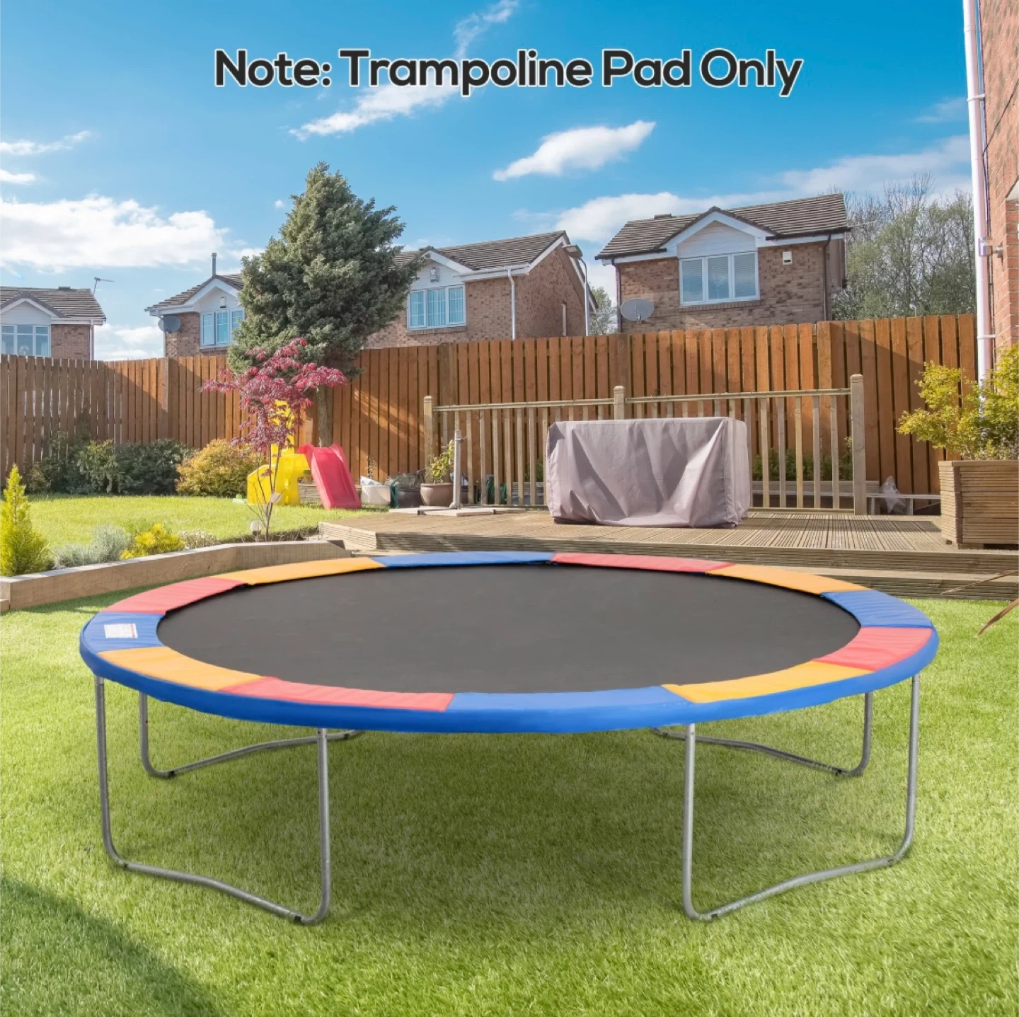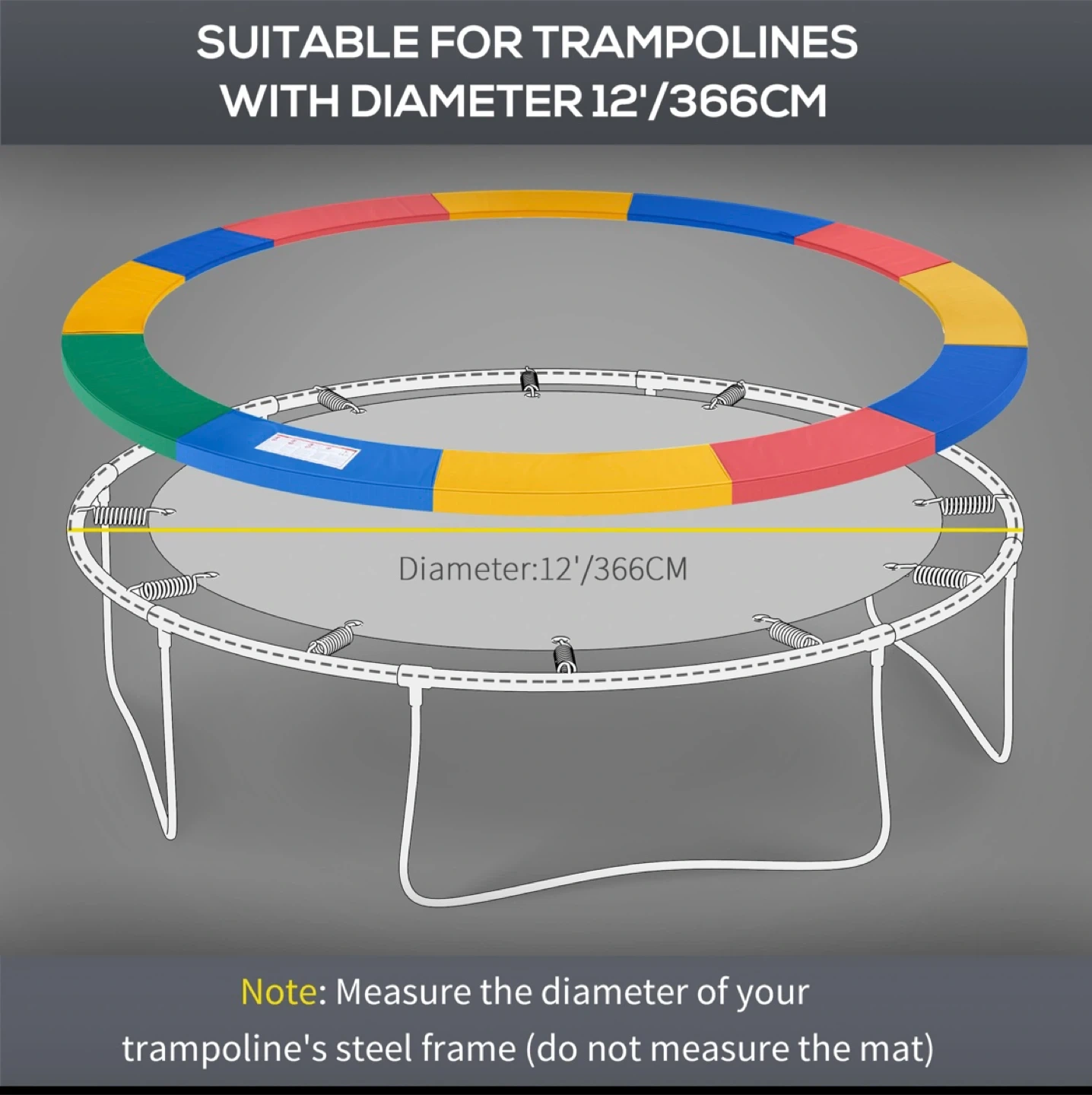Keep your trampoline safe with this 12ft diameter trampoline safety pad! It's made of 0.35mm PVC (500D), 15mm EPE Foam, and 128g/m² PE, making it tear-resistant, water-resistant, and UV-resistant. This pad is suitable for trampolines with a diameter of 12'/366cm. Note that this is the pad only!
