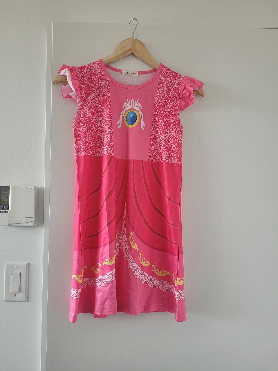 116Selling a cute Princess Peach pyjama dress. It's in great condition and perfect for any little Nintendo fan. The size is 150 and says 3 to 12 years (but seems a little on the small side so think 6-10 years would work best). The dress features a lovely design with rose patterns and the iconic Princess Peach emblem. First come, first serve.