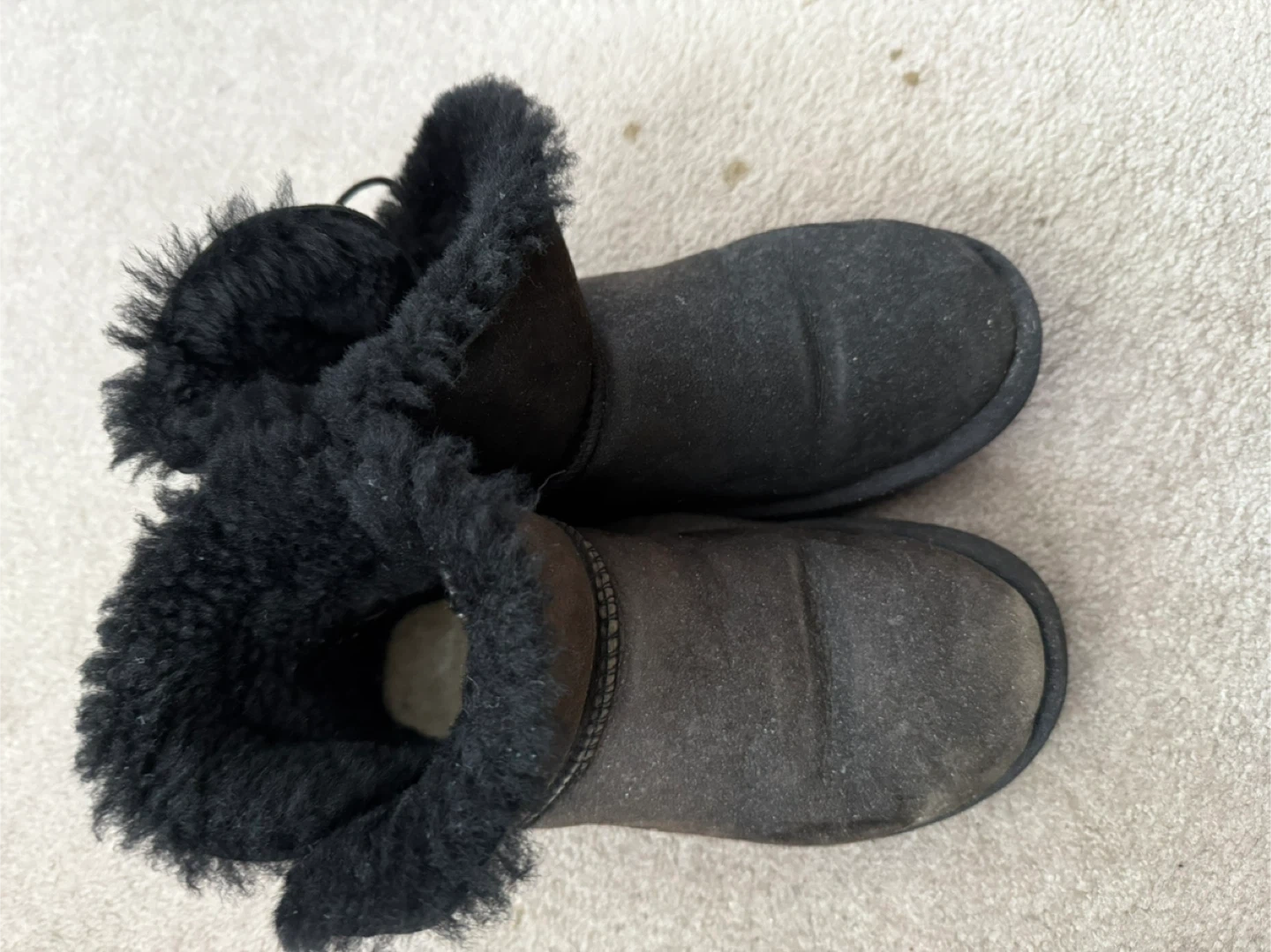 Selling a pair of UGG kids boots in size 5. They are black and in used condition. The size is US 5, UK 3.5, EU 36.
