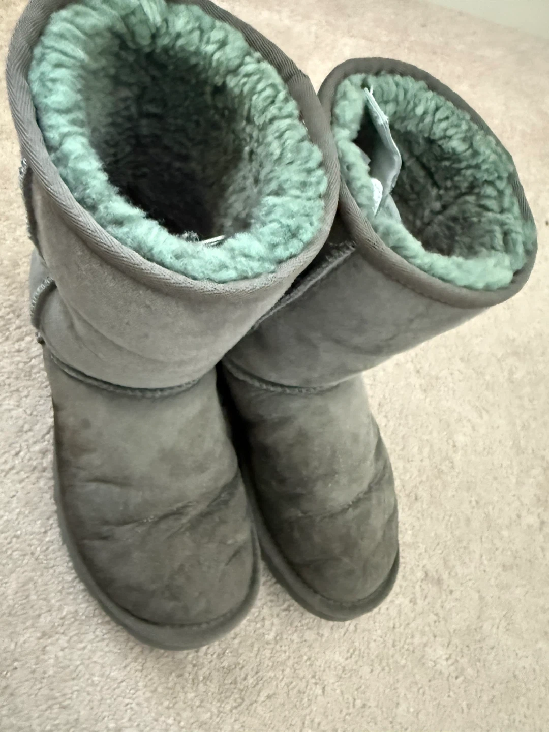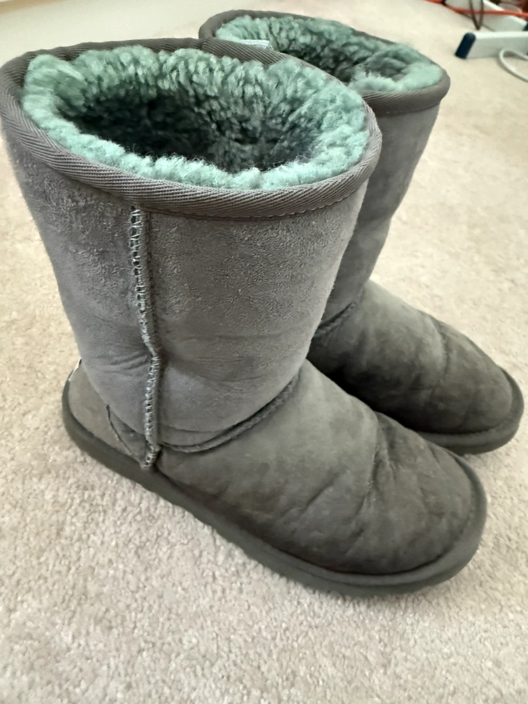Selling a pair of UGG Classic Short boots in a versatile grey colour! They're in great condition and super cozy for the colder months. The size is a women's 6.