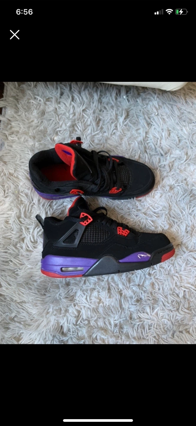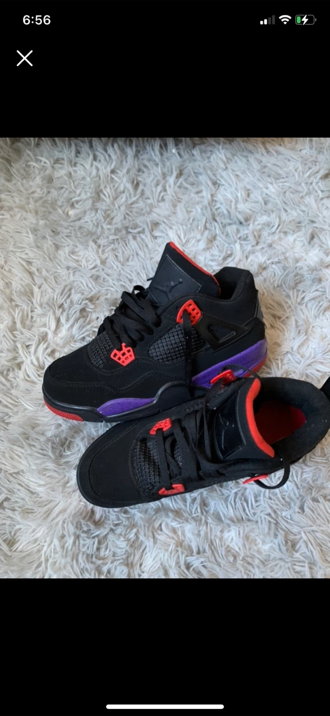 Here are some Air Jordan 4 sneakers! They feature black, red, and purple colour scheme. Great for adding a pop of colour to any outfit! Heads up one of the pairs is broken in the back and they are reps as well