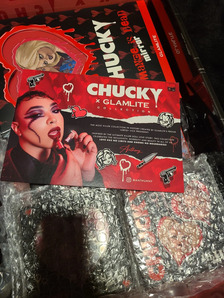 175Selling a brand new Glamlite Chucky makeup collection! This set includes a variety of items featuring the iconic Chucky characters. Perfect for any horror makeup enthusiast or collector.