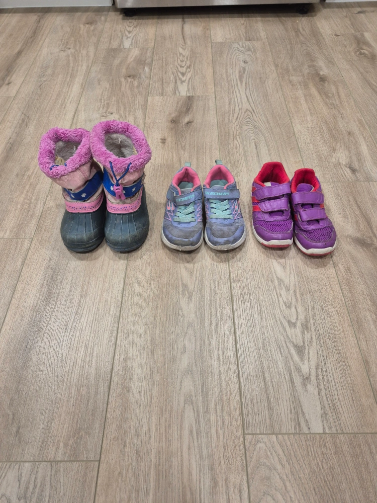 104$3 each or all for $5 to move quick! Selling a bundle of kids' shoes! There are three pairs included. One pair of snow boots, one pair of Skechers, and one pair of purple sneakers. The sizes are US 11. Check my other listing for more kids items! Bundle Deals Available.