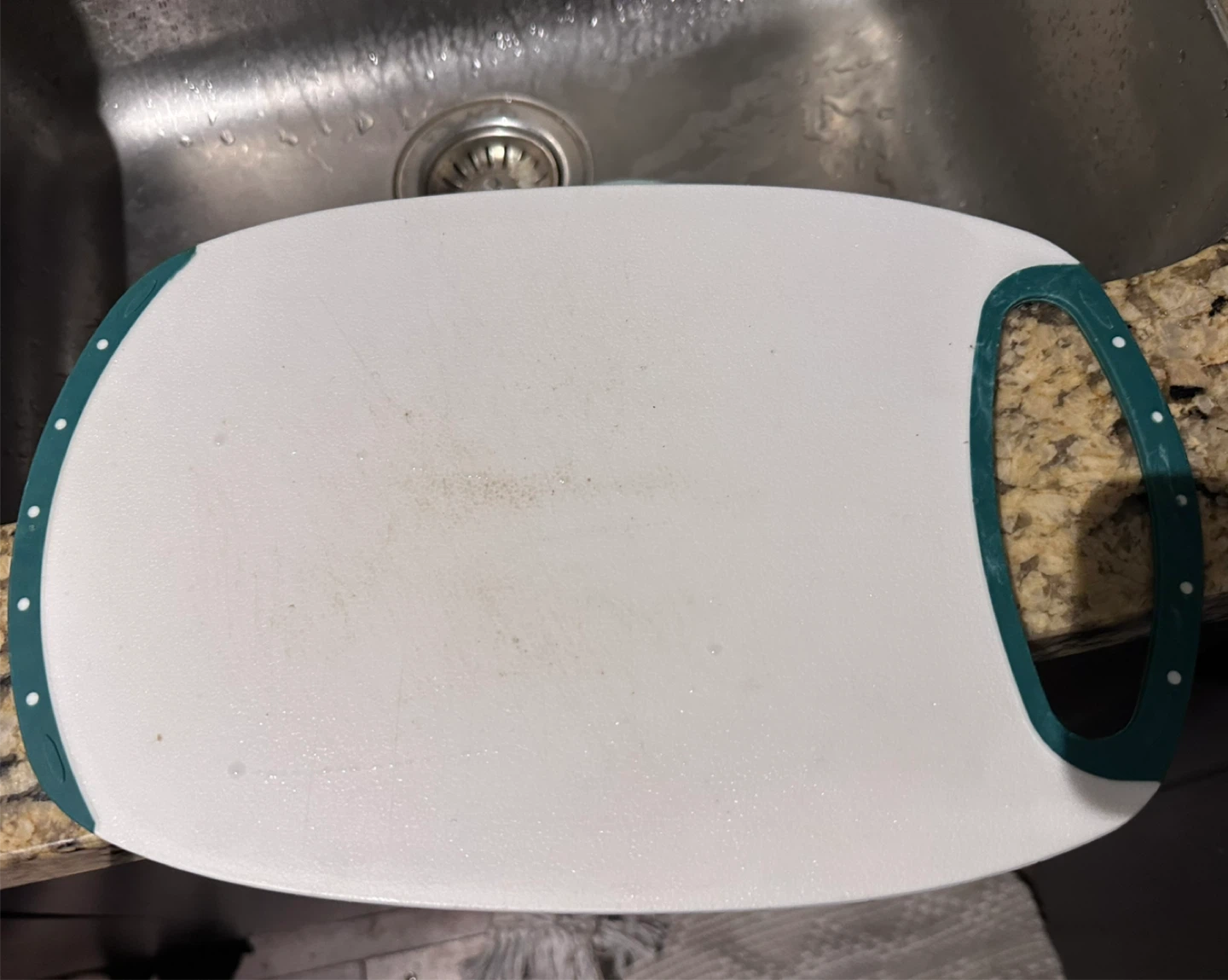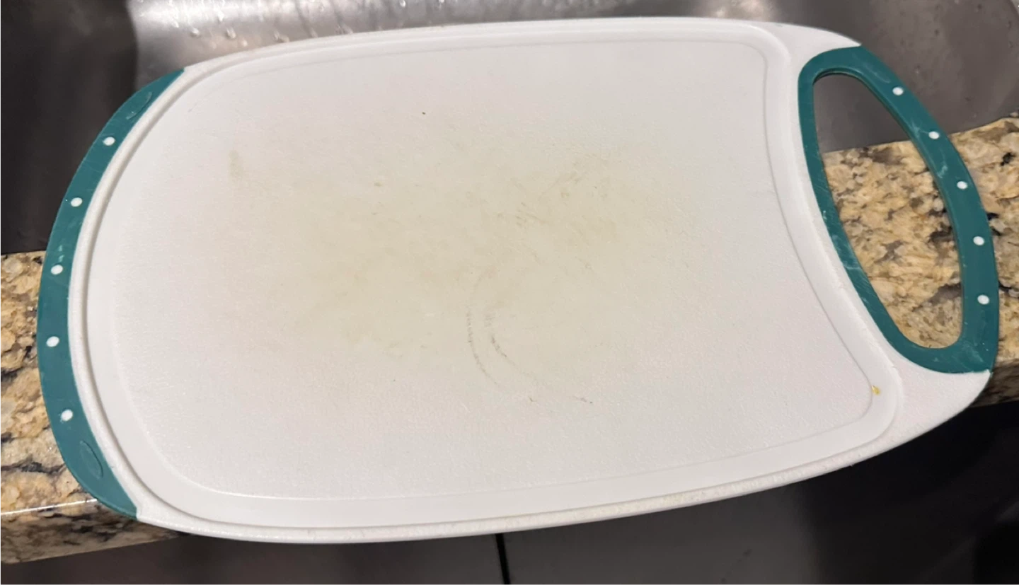 Giving away a cutting board, perfect for any kitchen! It has a convenient handle for easy carrying and storage. It's in good condition and ready for a new home