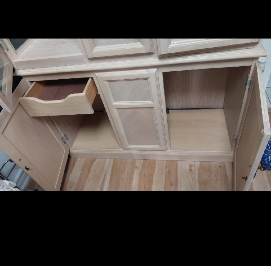 Here's a wooden cabinet with doors and a drawer. It's a great piece for storage or display in your home. The cabinet features a light wood finish and classic design. It has multiple doors and a drawer for versatile storage options