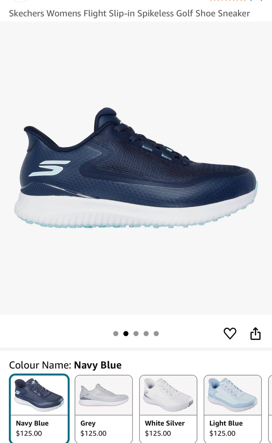 These are a brand new pair of Skechers Women's Flight Slip-in Spikeless Golf Shoes in Navy Blue! They feature Ultra Flight cushioning and are water repellent, perfect for a day on the green. They are women's size 7.5 US
