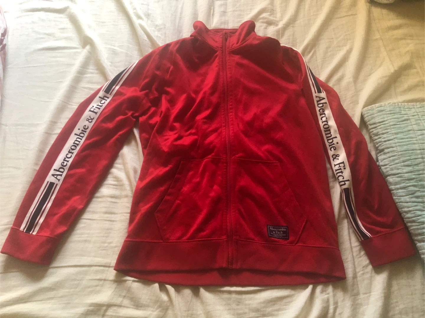 115New with out tag star war black t shirt size M , red A&F jacket in very good condition except, small damage on the back of the collar , but you won’t see it when fold down the collar when wearing , see last pic , both for $15 thanks, pick up near Joyce sky train.