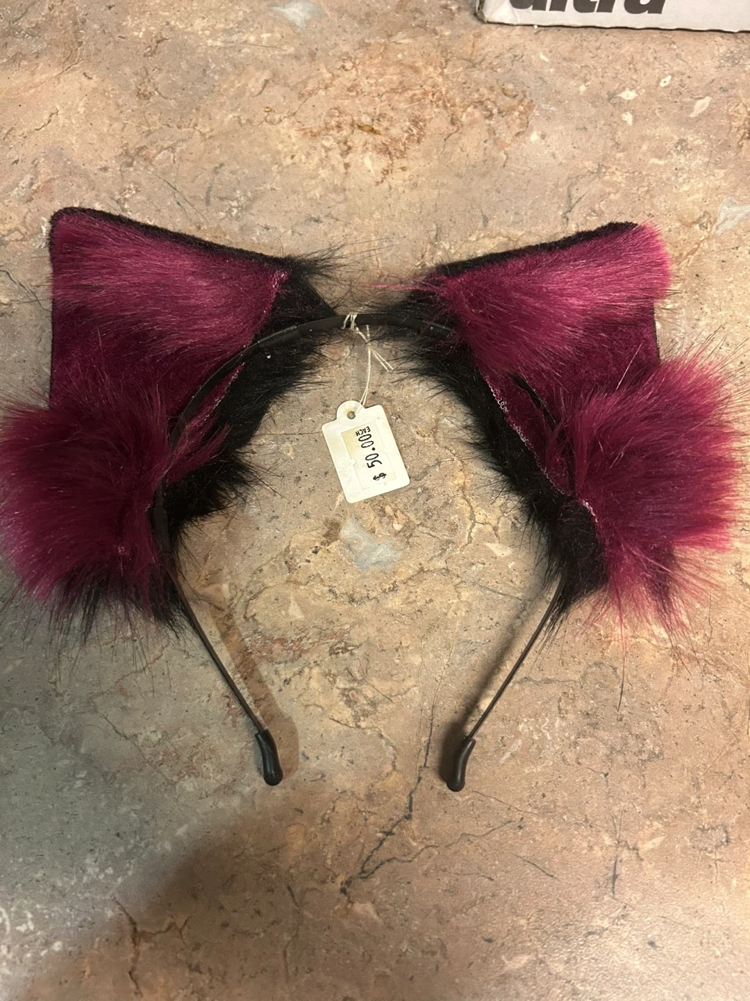 Super cute cat ear headband! It features burgundy and black faux fur. Perfect for a costume or just for fun! Ears can also be adjusted so they are in the perfect position