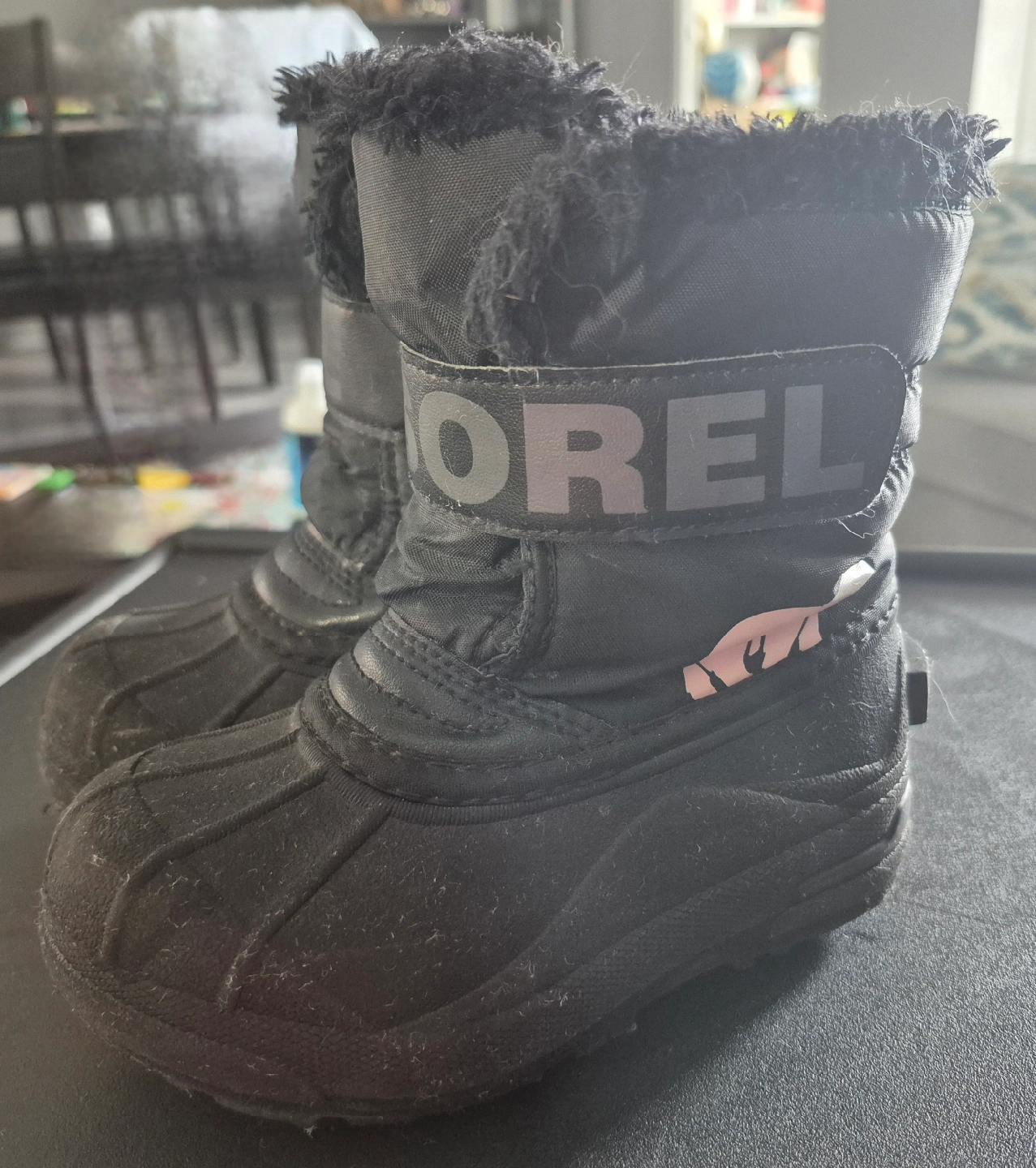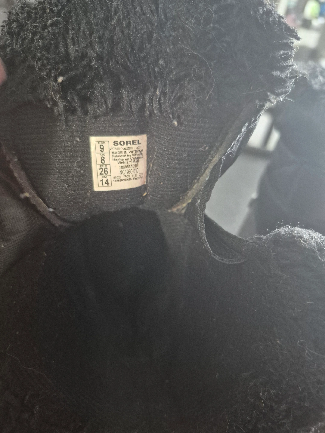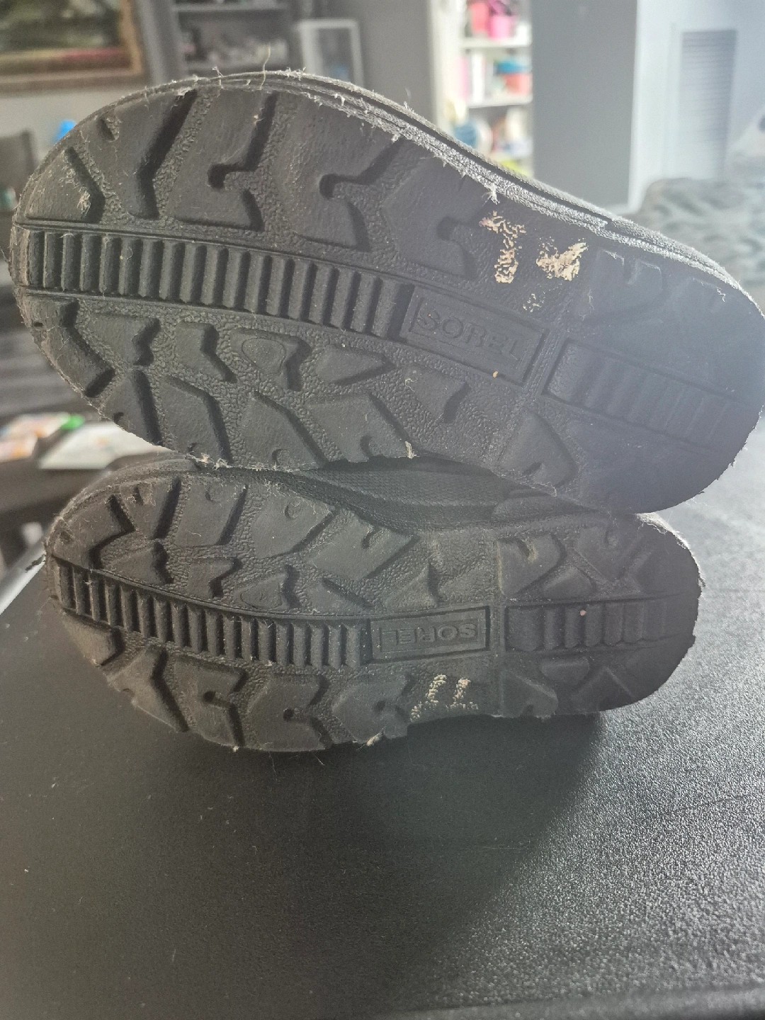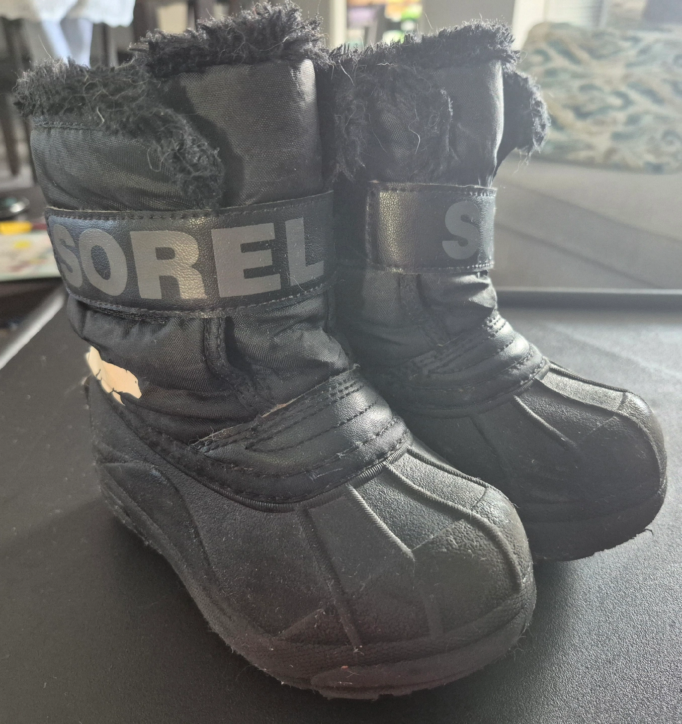 60Selling a pair of Sorel winter boots in black. They're in used condition, but still have lots of life left! The size is kids 9.