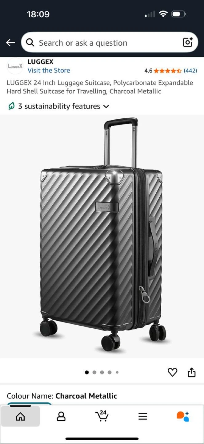 25π§³ LUGGEX 24β Suitcase β Charcoal Metallic β¨ π° Price: 110 CAD π¦ Condition: Brand New in Box β Premium polycarbonate hard shell β strong, lightweight, and impact-resistant β Expandable design (+15% space) β Smooth 360Β° spinner wheels β TSA-approved lock for secure travel β Size: 24β (25.2 x 16.1 x 11.2 in, expandable to 12.2 in) β Capacity: 65L β 70.5L β Weight: 8.8 lb Perfect for any trip β stylish, durable, and easy to maneuver! πPickup in Waterloo π See my other listings π