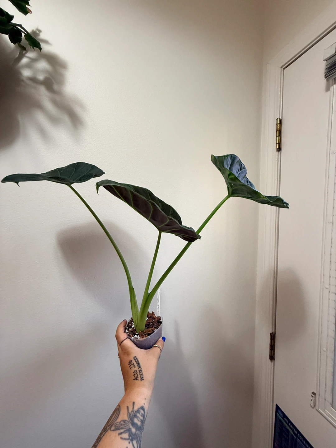 Selling a beautiful Alocasia plant! It's a lovely addition to any indoor space, with its striking leaves and unique texture. It's been well-cared for and is ready to bring some greenery into your home