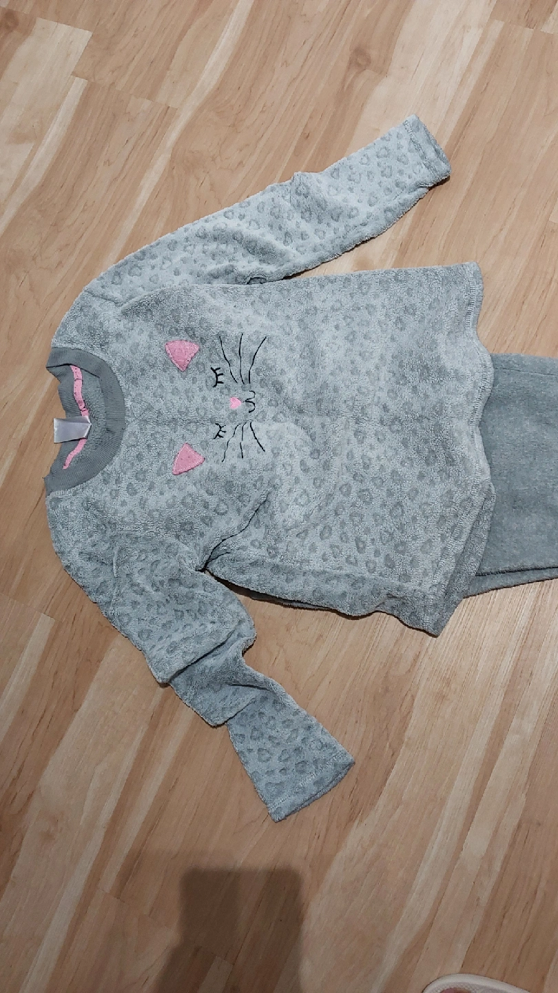 1000+Selling a super cozy grey pajama set with a cute cat face design! It's in great condition and perfect for lounging around the house. The material is really soft and warm, great for chilly evenings. Smoke free and pet free home Kindly note all sales are final and no return or refund Please check my other listings aswell😊