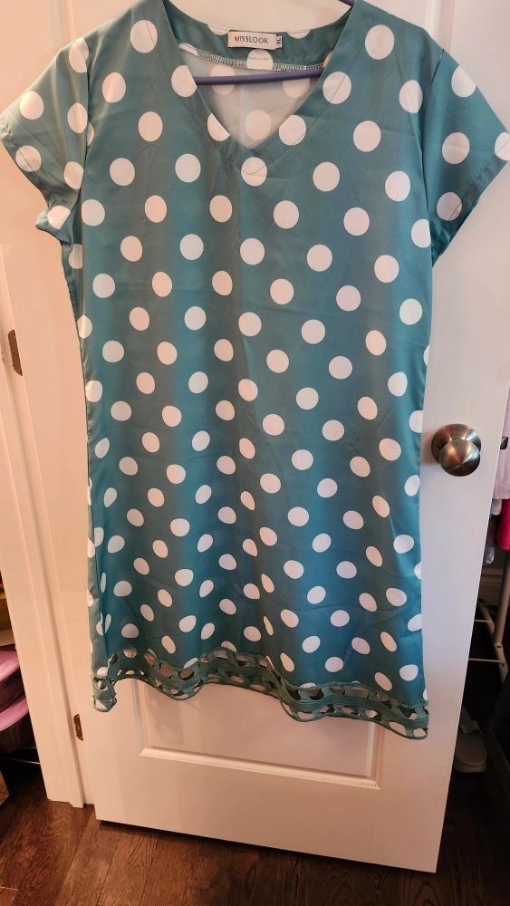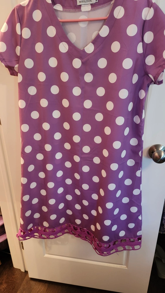 10Cute shift dresses with a fun polka dot pattern! It's a size M and in great condition. Perfect for a casual day out or a summer party. Available in teal and purple!