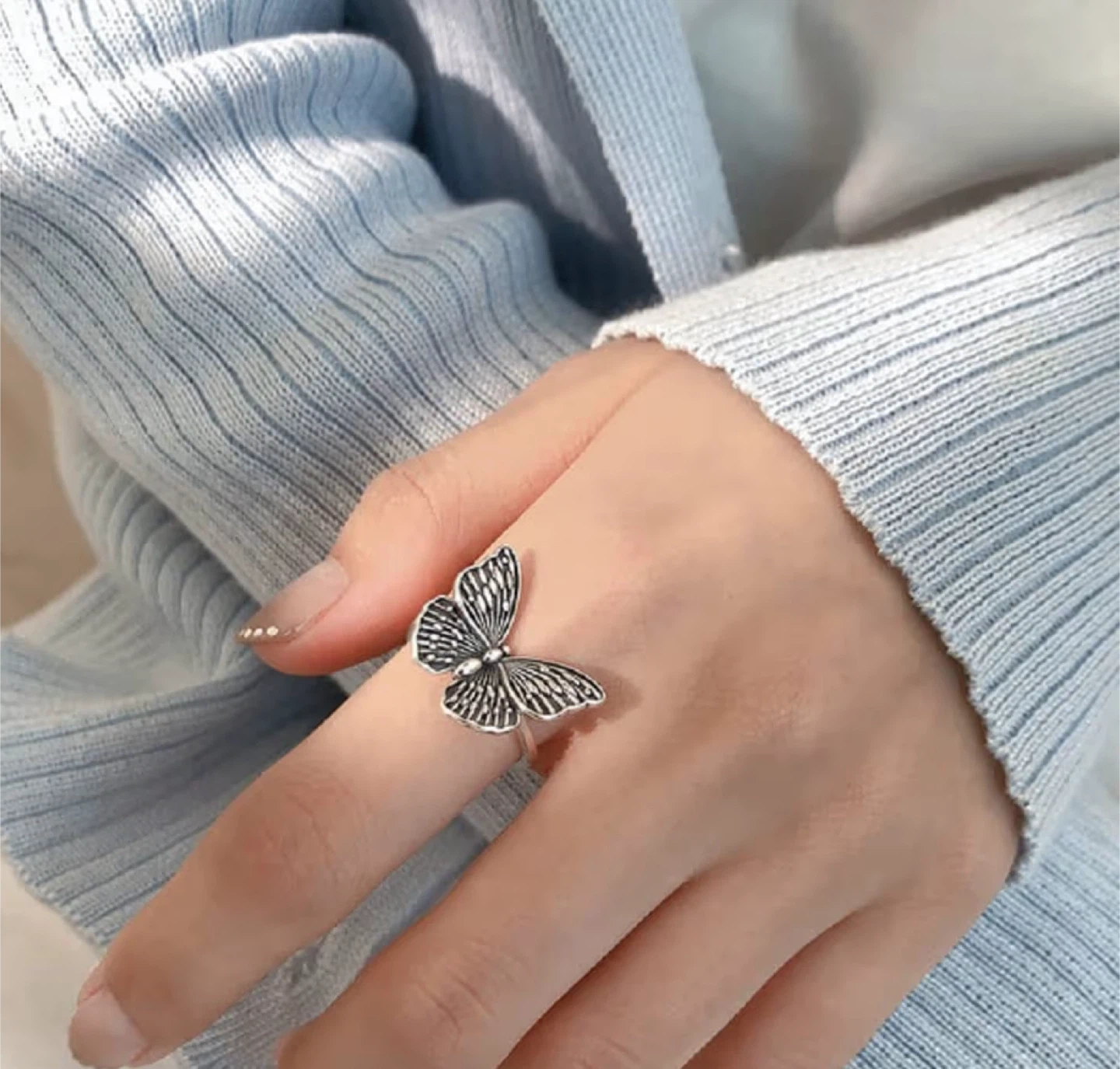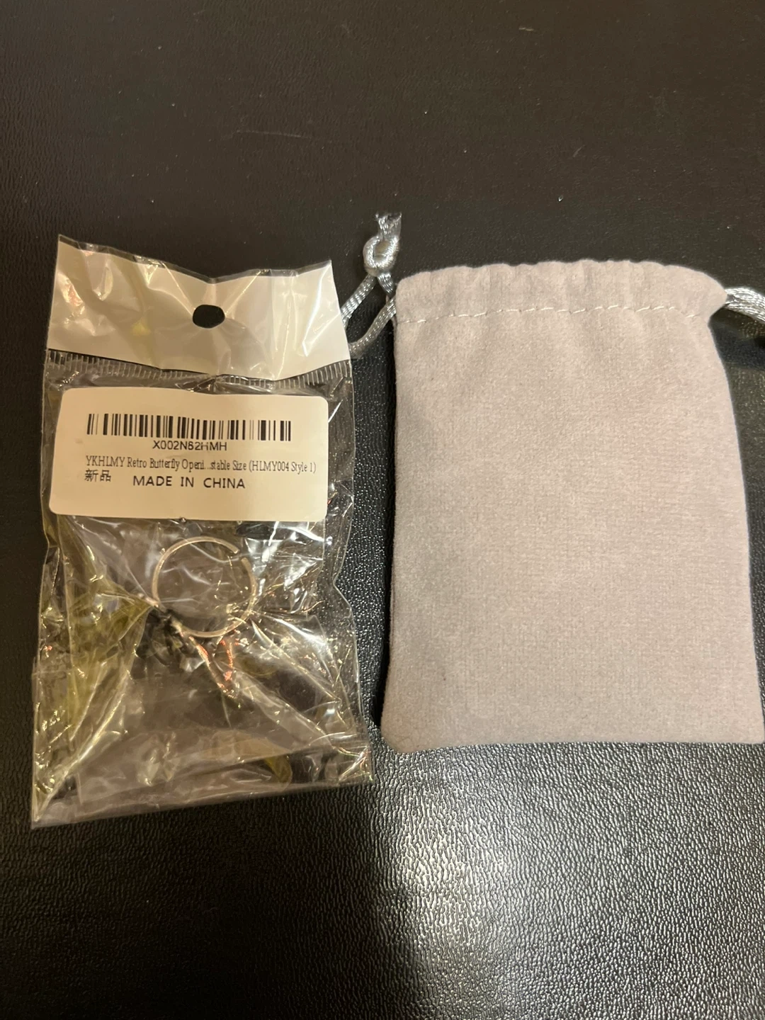 131This is a YKHIMY Retro Butterfly Open Ring. It's adjustable in size and comes with a small pouch. The ring is made in Sterling Silver