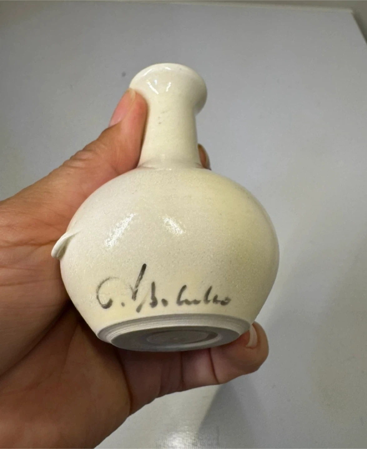 1000+unique handmade ceramic vase! It has a lovely rounded shape and a narrow neck. The vase features a signature on the bottom and a beautiful glaze design. Perfect for adding a touch of artistry to your home decor Pick up near Lawrence and Keele