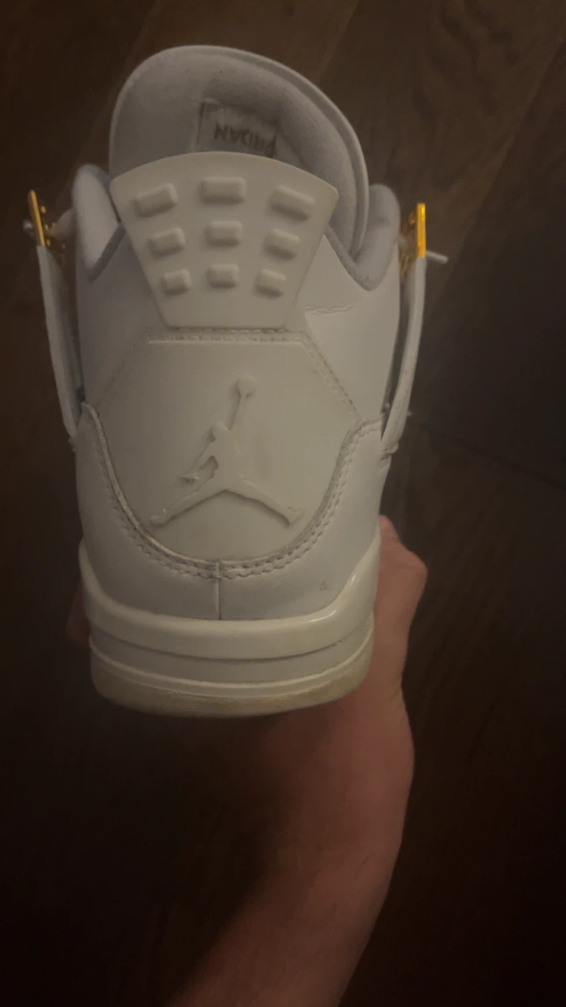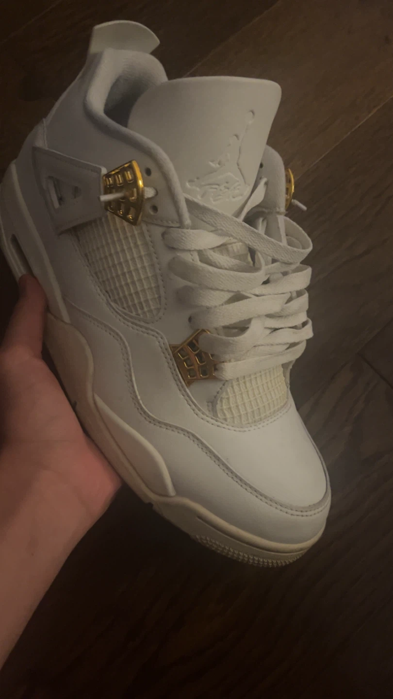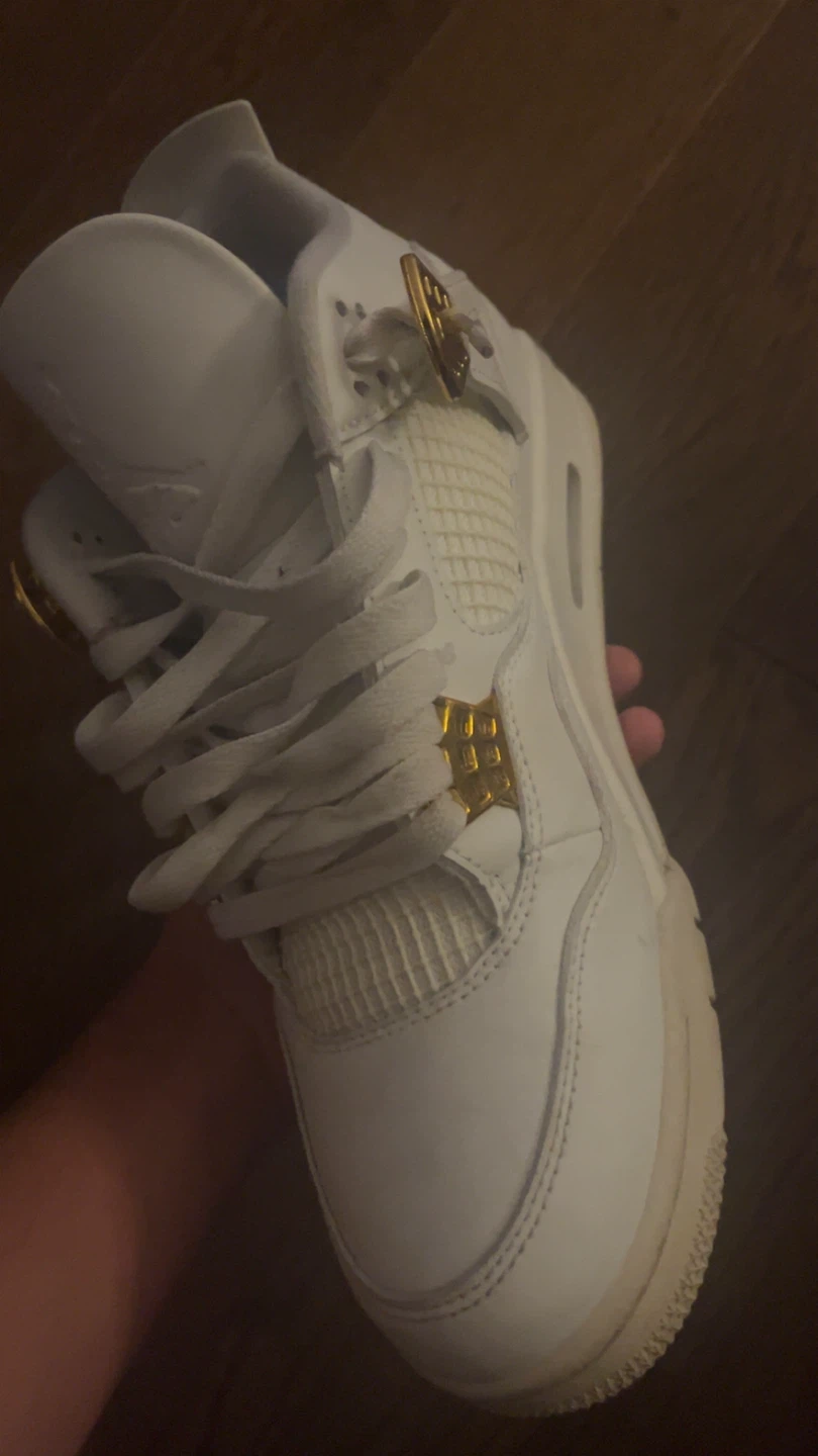 Selling a pair of Jordan 4 Retro in Metallic Gold. They're in good condition, with some signs of wear. Great for everyday use!