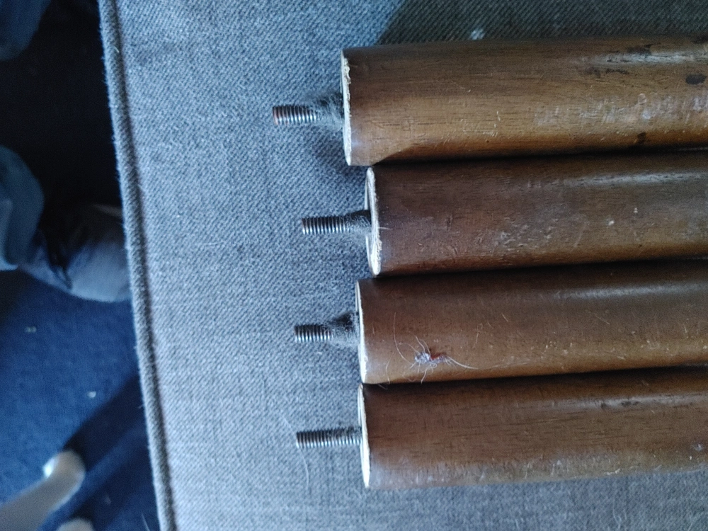 Selling a set of four wooden furniture legs. They have a nice brown colour and are ready to be attached to your favourite piece of furniture. Perfect for a DIY project or replacing old legs!