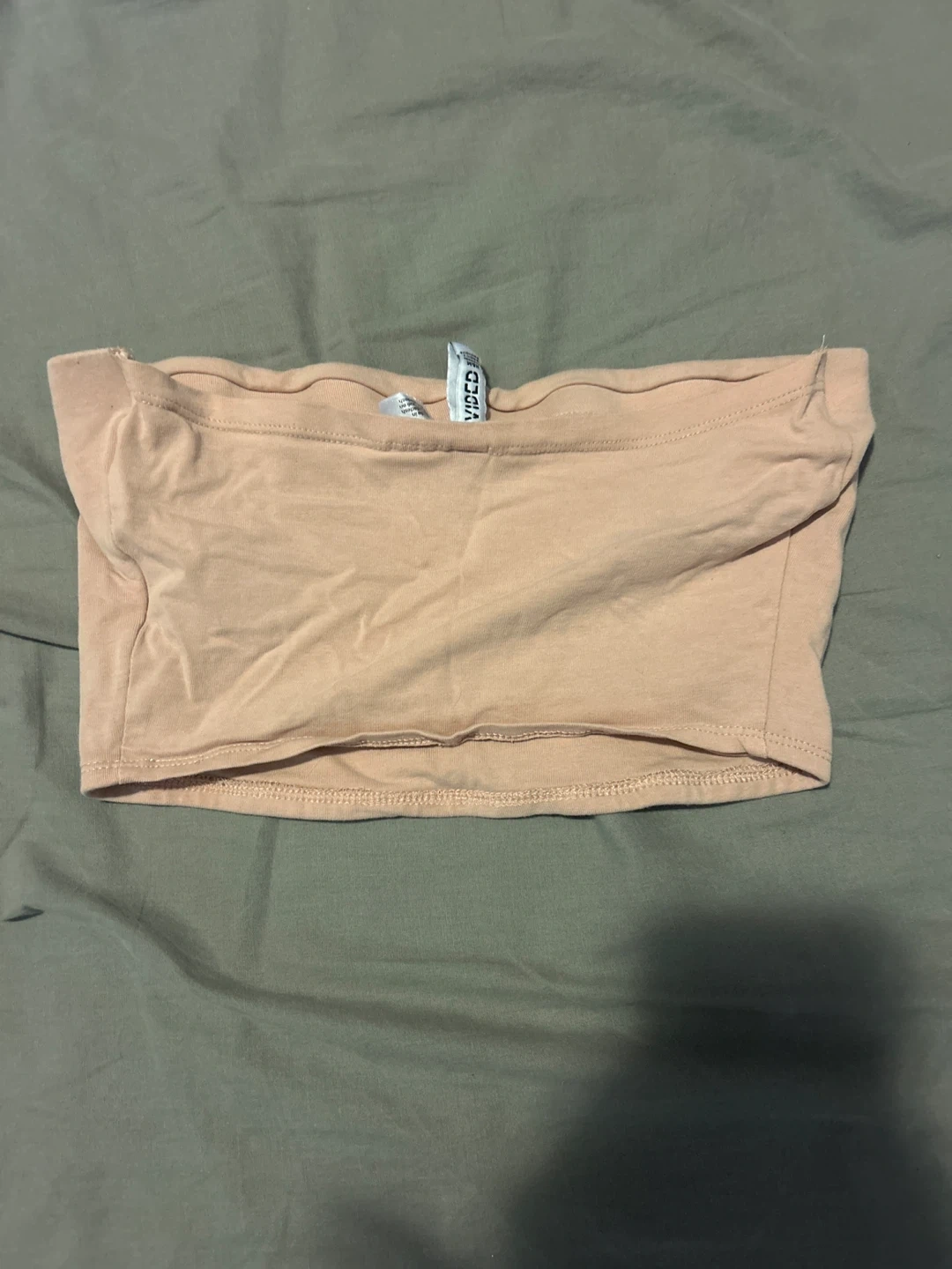 Selling a cute H&M Divided tube top in beige! It's a size small and in great condition. Perfect for layering or wearing on its own during warmer weather!