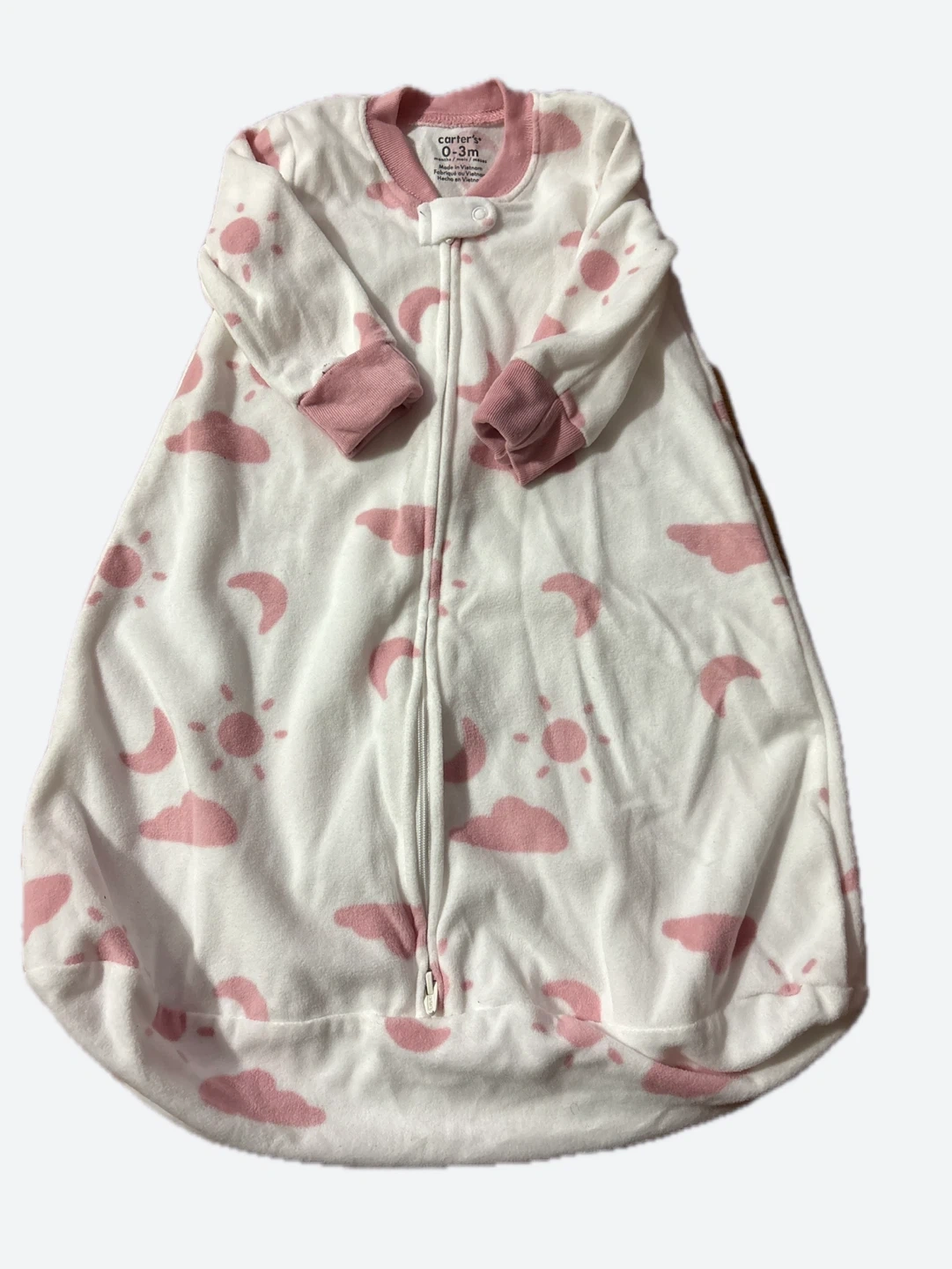 548A cozy Carter's sleep bag for your little one! This adorable sleep bag is sized for 0-3 months and features a cute pink and white cloud and sun design. Perfect for keeping your baby snug and secure during sleep