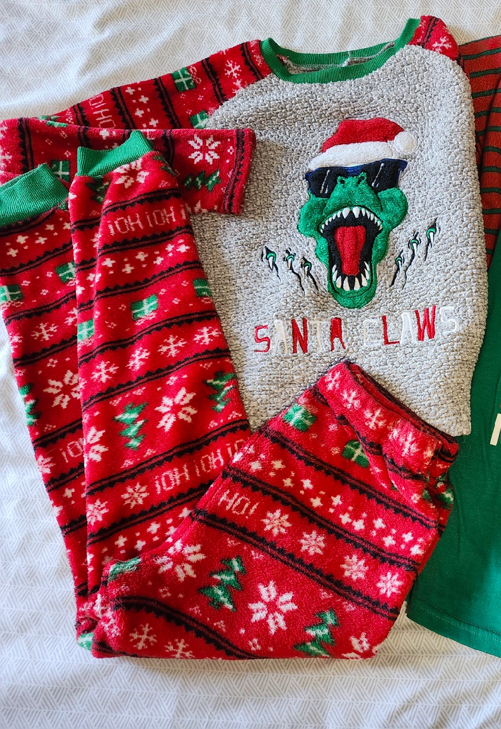 3 sets of holiday pjs that fit size 10/12.