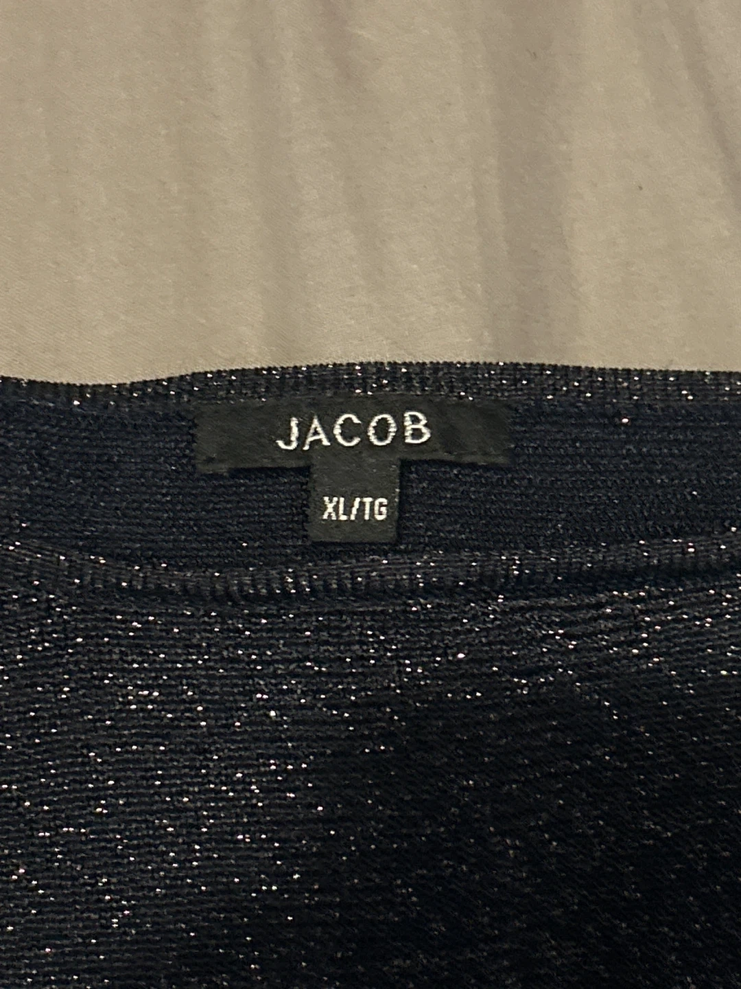 Selling a Jacob long sleeve top in size XL/TG. It's a sparkly black colour, perfect for a night out or dressing up an outfit!