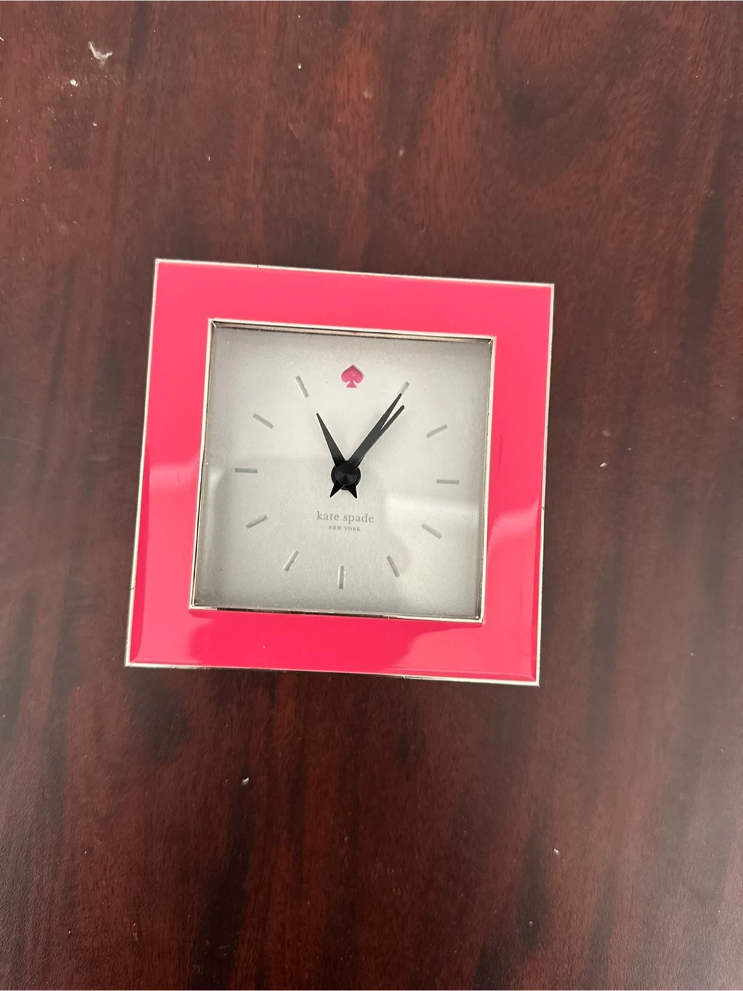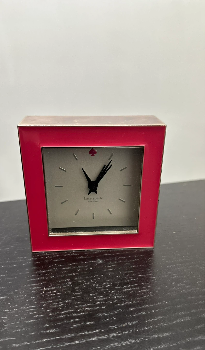 Add a touch of charm to your space with this Kate Spade New York table clock! The clock features a cute spade design and a vibrant pink frame, making it a stylish addition to any room